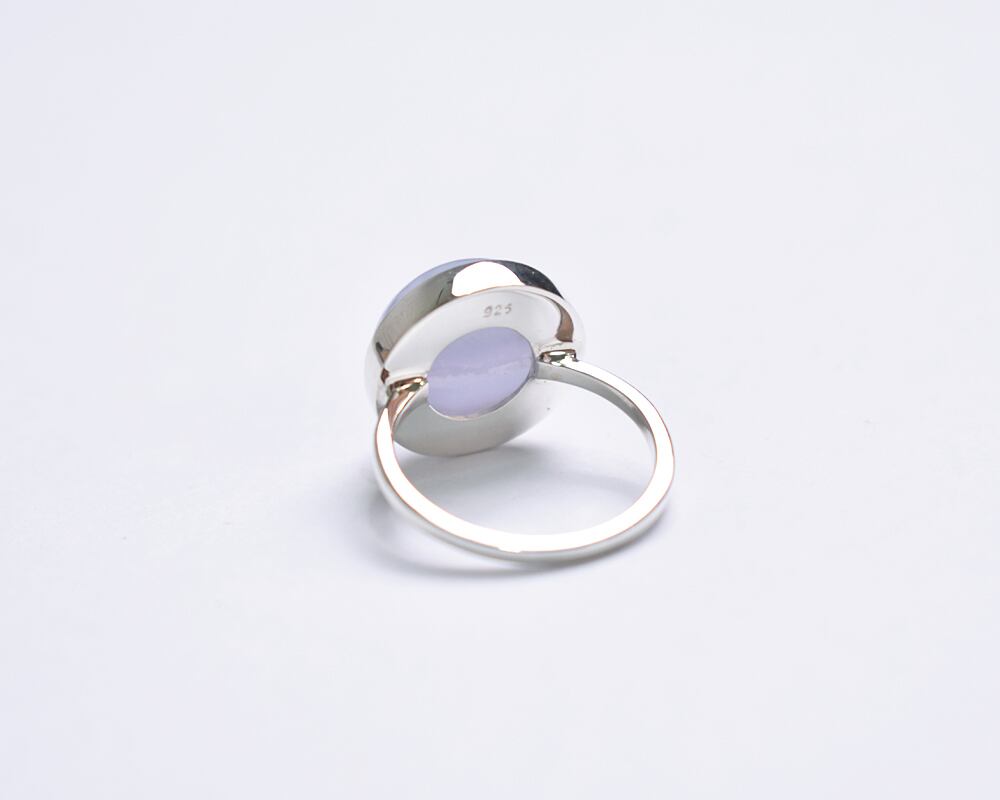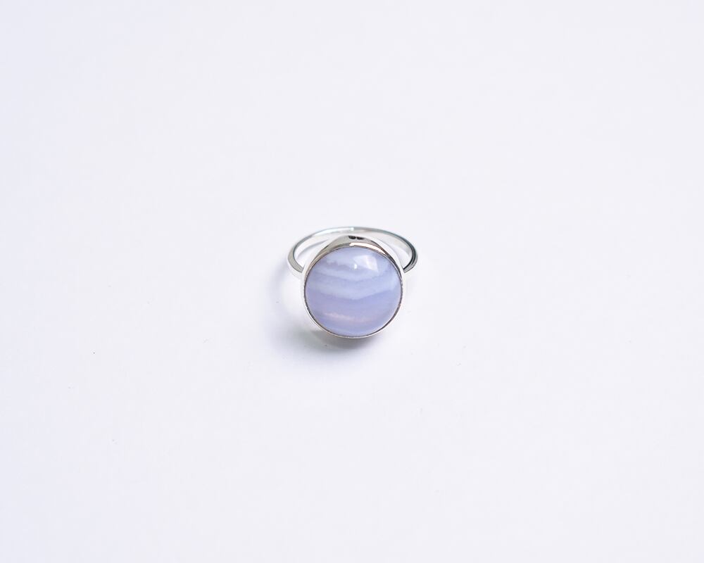 カボションカットのつるんとした丸い形が可愛らしいブルーレースアゲート。