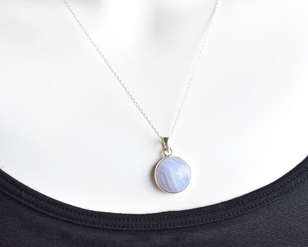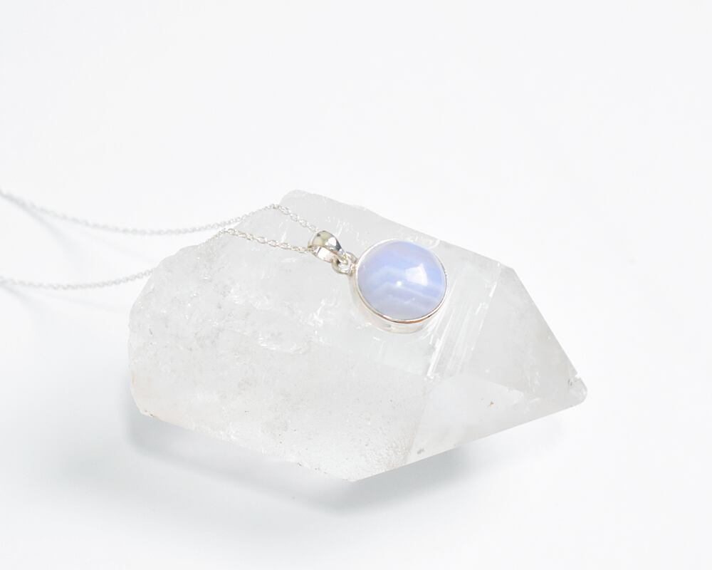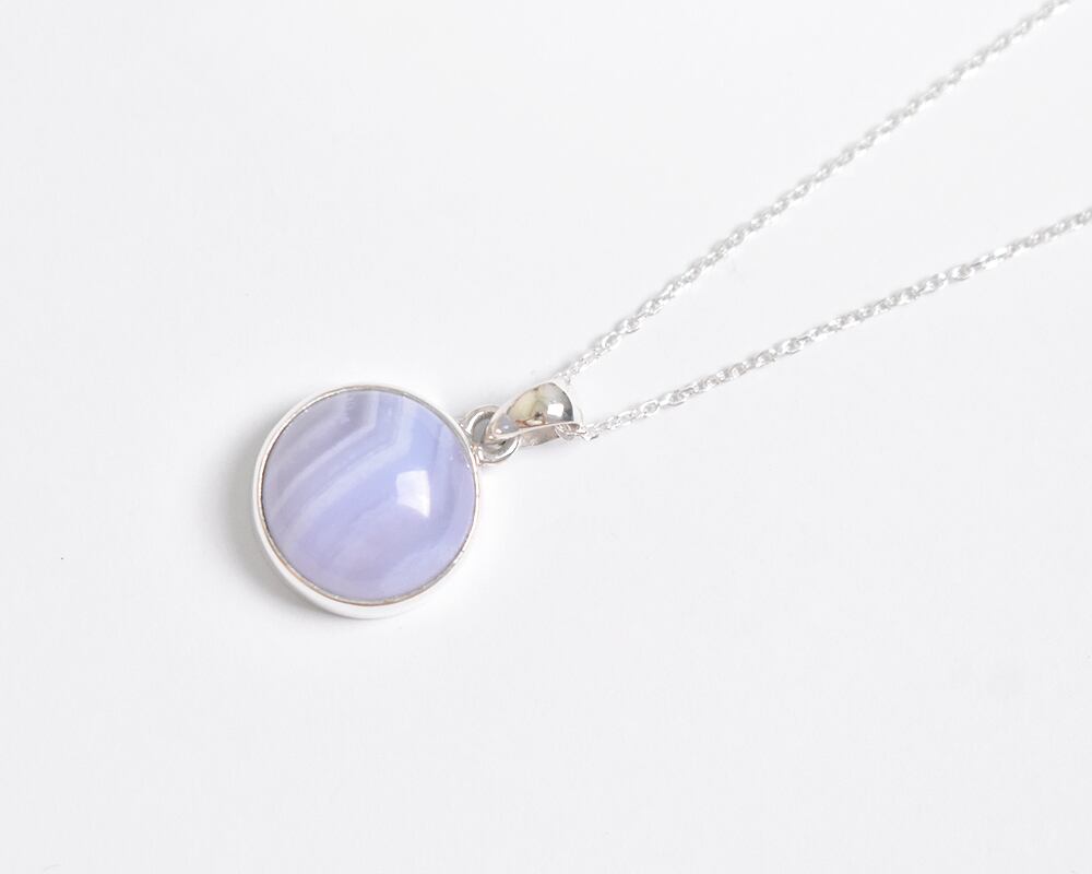カボションカットのつるんとした丸い形が可愛らしいブルーレースアゲート。