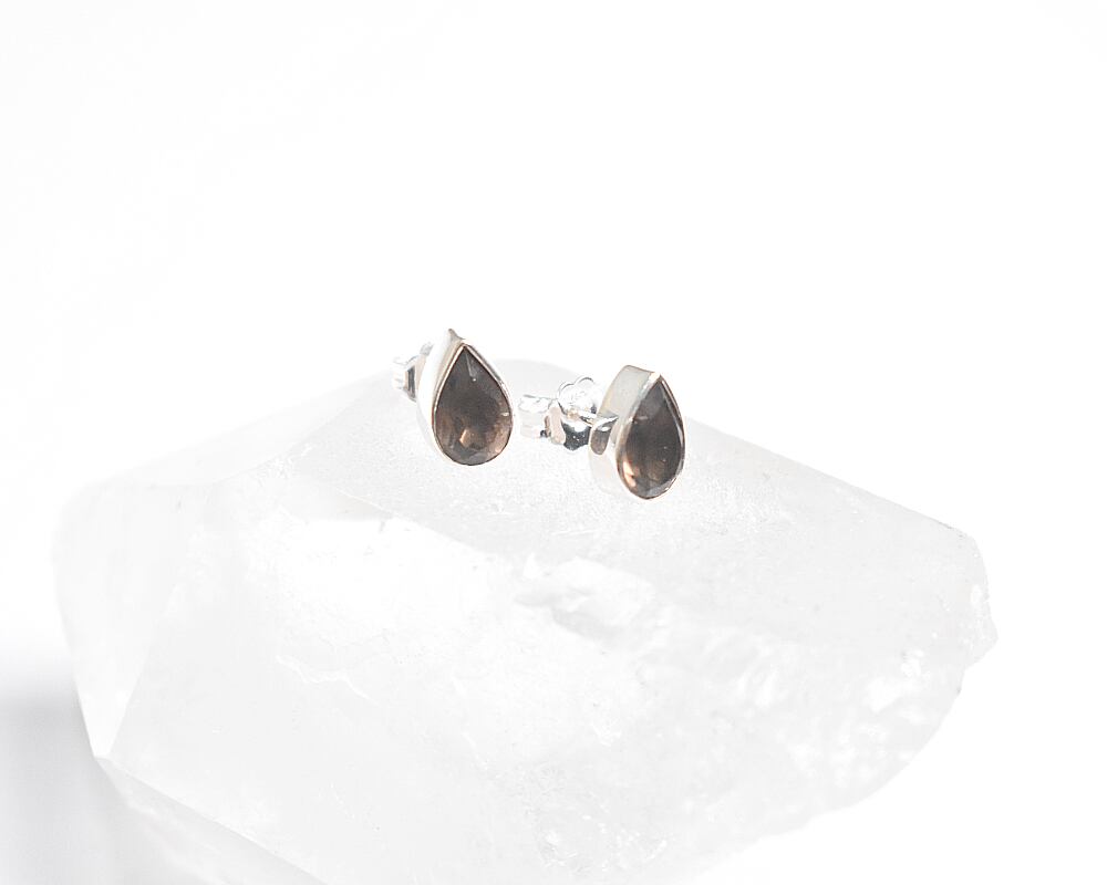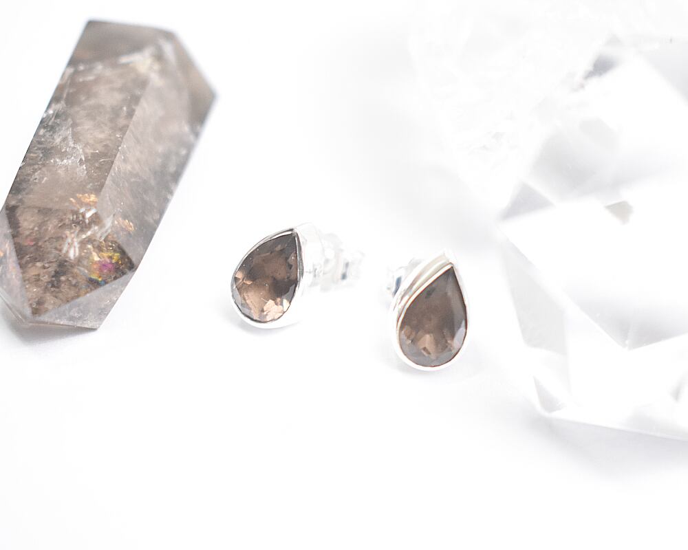 透明感あふれるしずく型のスモーキークォーツをあしらった、繊細で上品なシルバー925のスタッドピアスです。