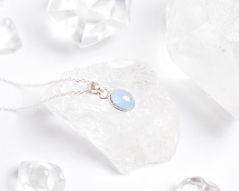 まるで澄みきった水の雫をそのままジュエリーにしたような、ブルートパーズのシルバーネックレス。