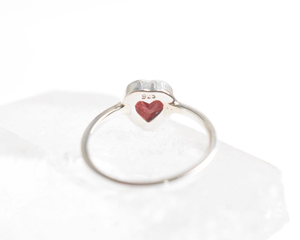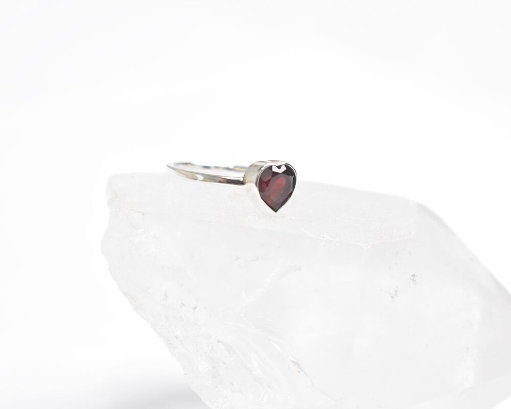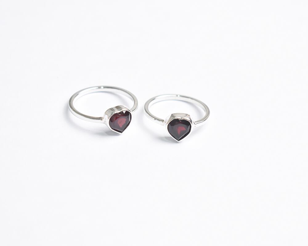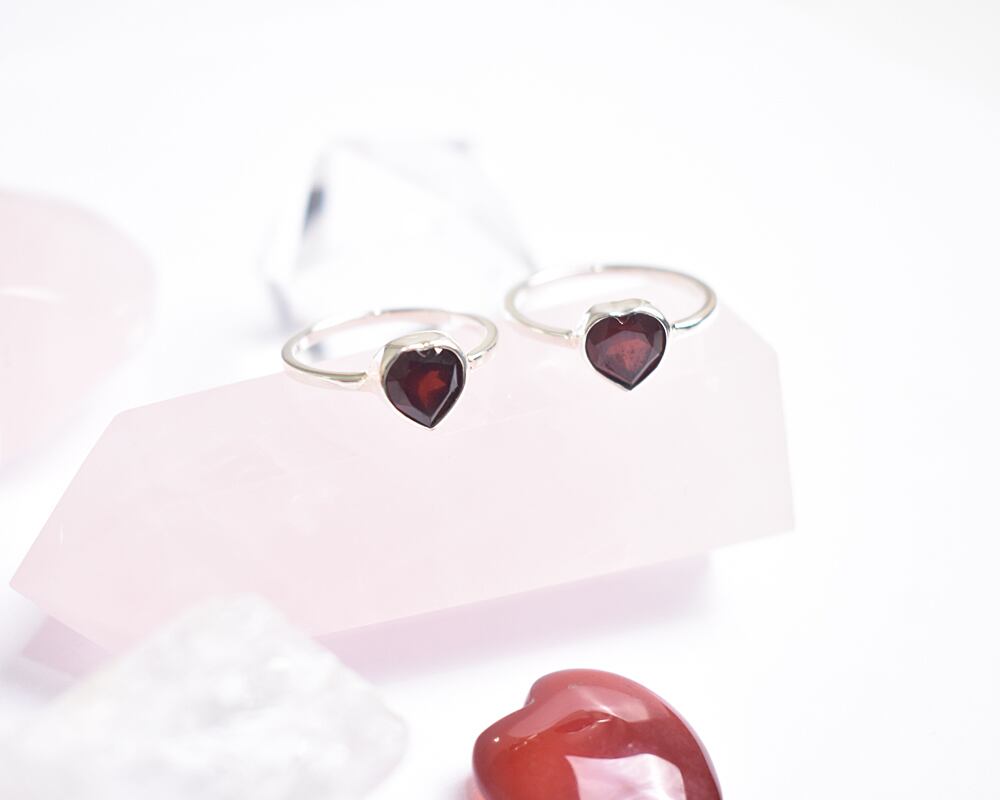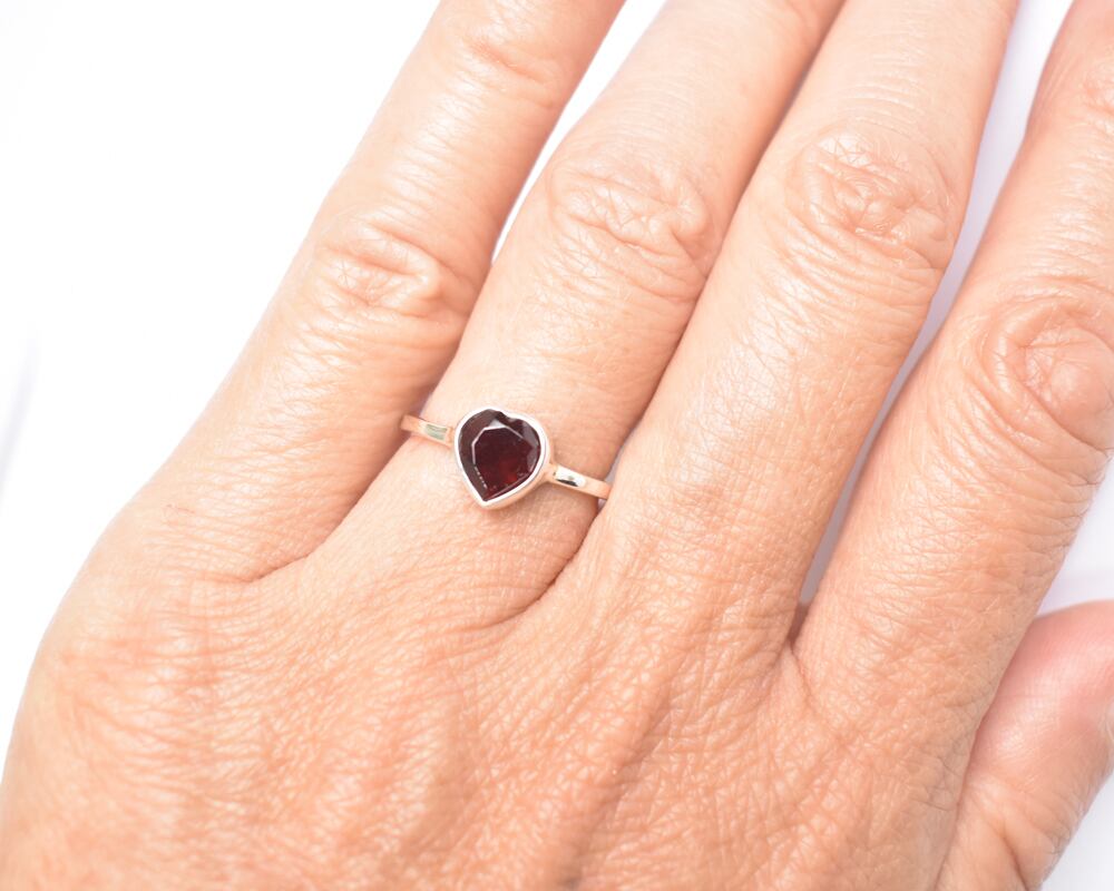 赤く透き通るハート型のガーネットをシンプルなデザインで仕立てたシルバー925のリングです。
