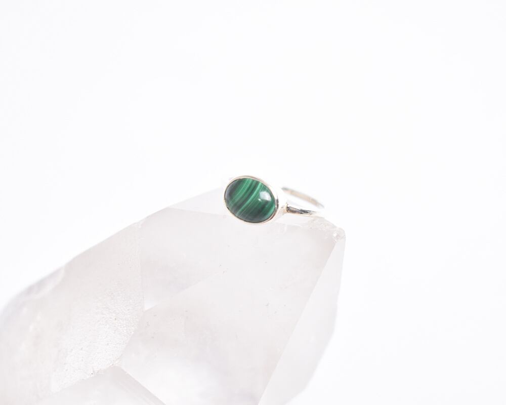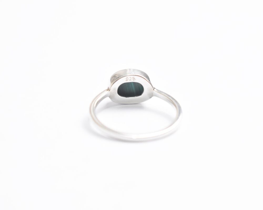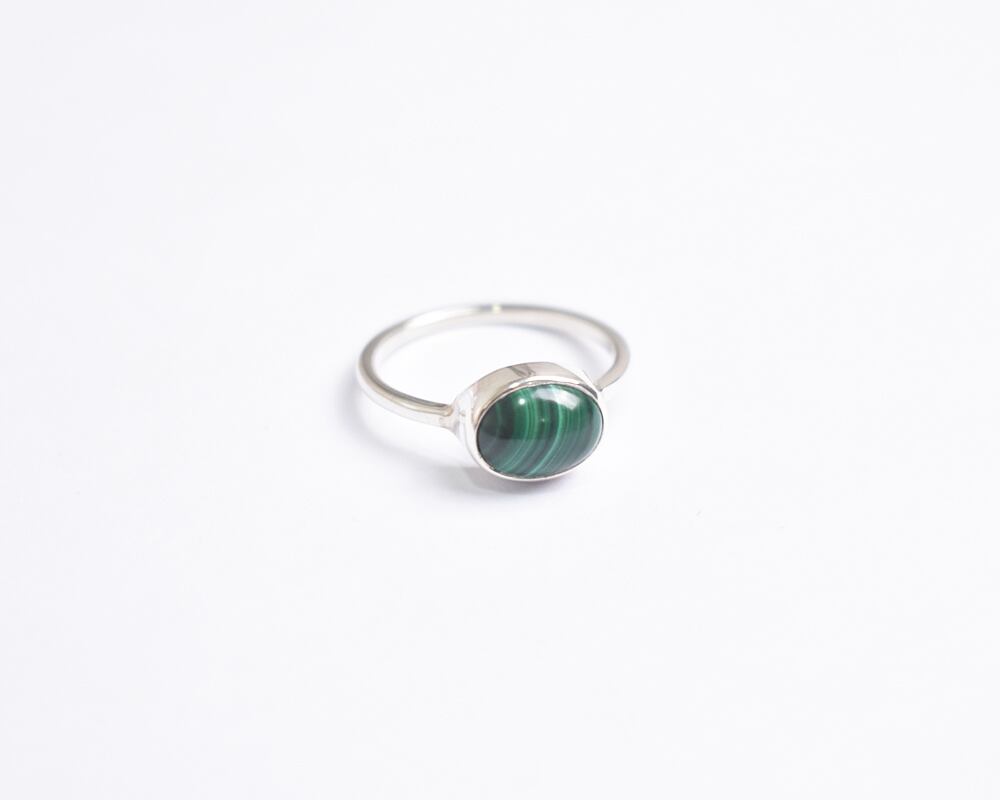 美しい縞模様が特徴の天然石、マラカイトをあしらったシンプルなシルバーリング。