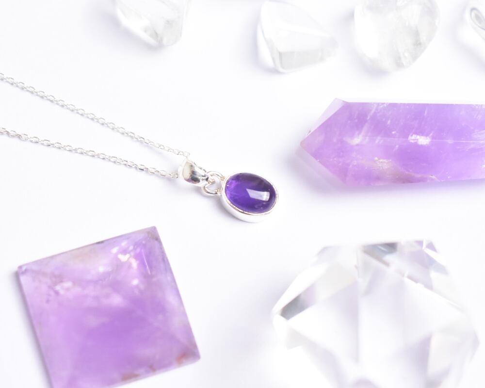 チェーンはシルバー925を使用し、アメジストの澄んだ色合いを引き立てるように仕立てました。