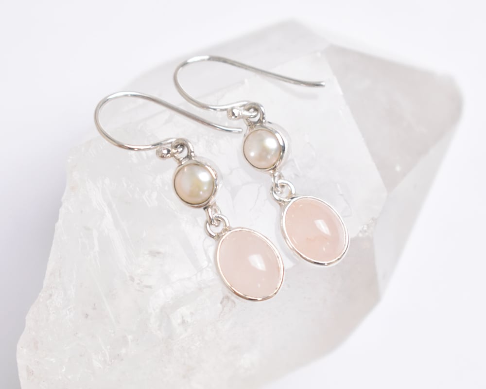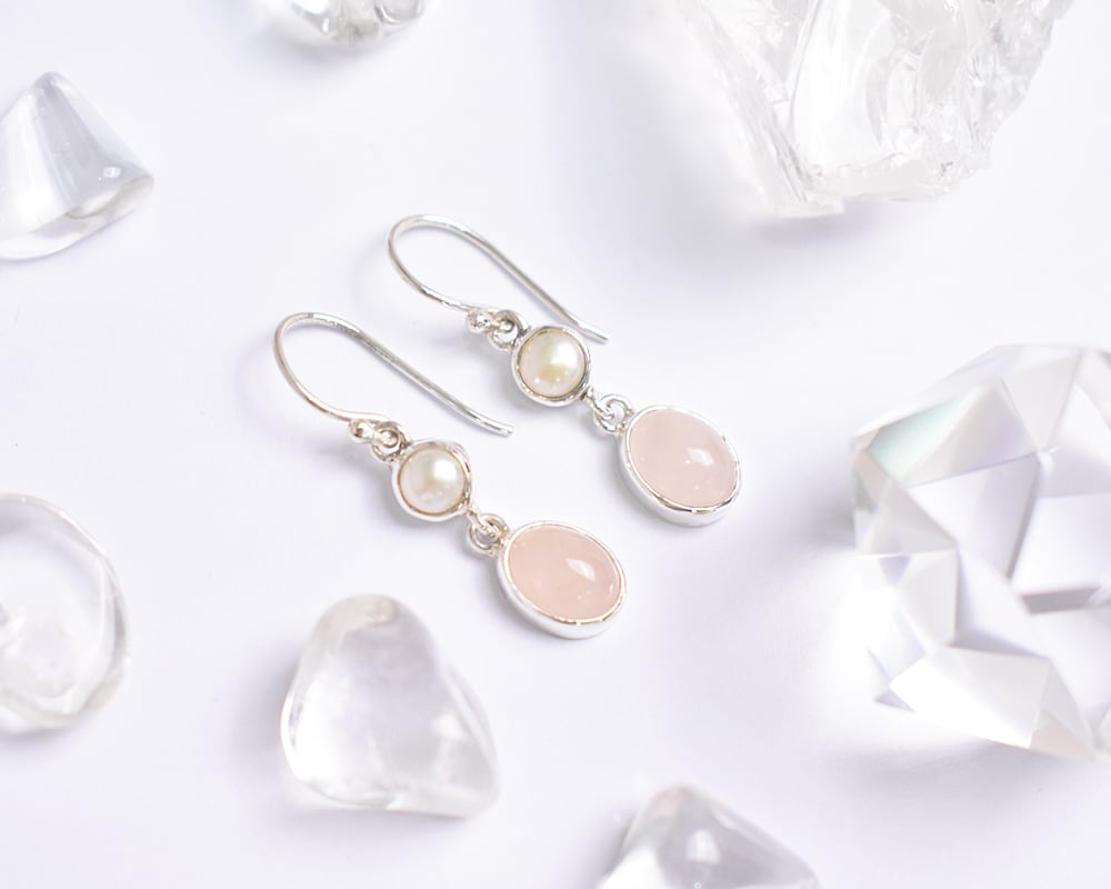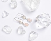 淡いピンクがやさしく輝く、ローズクォーツと淡水パールのシルバー925ピアス。