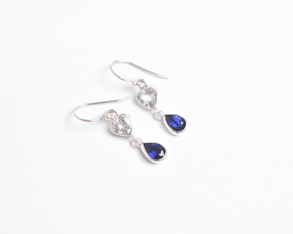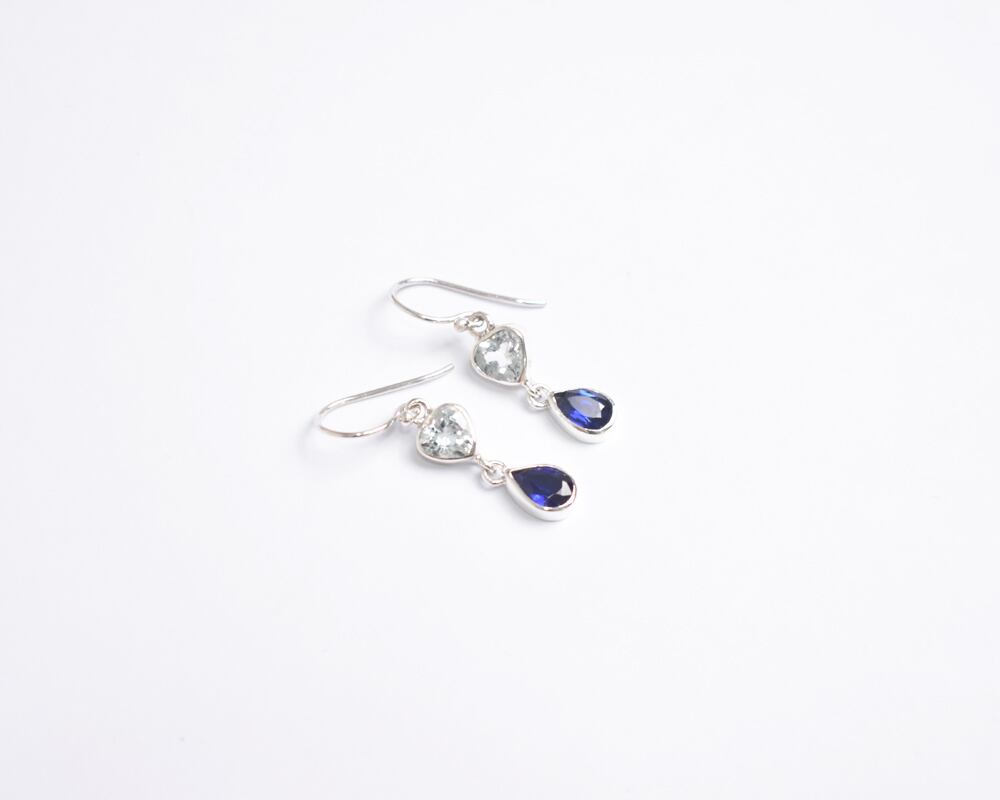 しずく型カイヤナイトとハートのアクアマリンのゆらゆら揺れるシルバーピアスです。