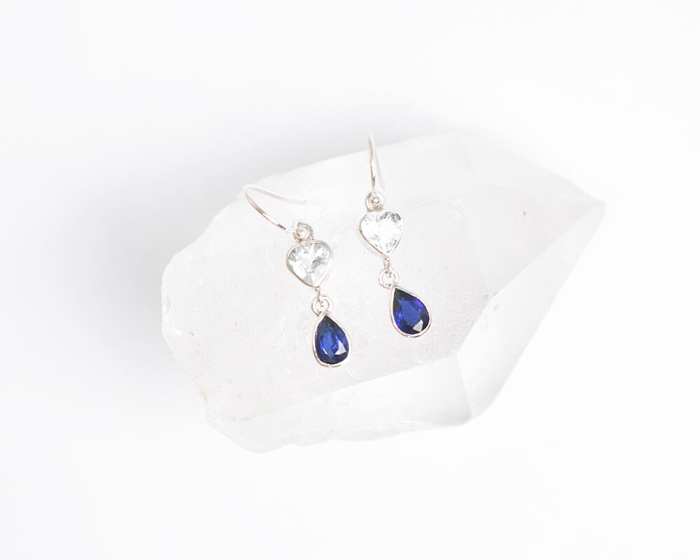 深く濃いブルーが美しいしずく型カイヤナイトと、透明感あふれる爽やかなハートシェイプのアクアマリンを組み合わせました。