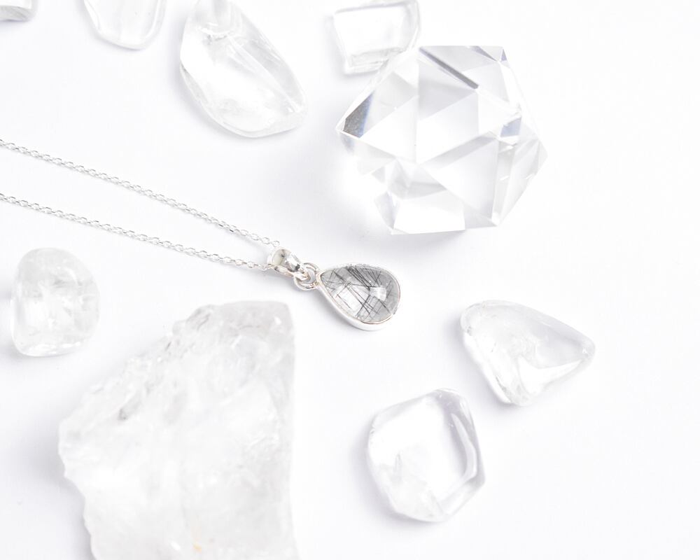 今回ご紹介するネックレスには、数あるブラックルチルの中から透明度が高く、針の入り方が美しいものを厳選しました。