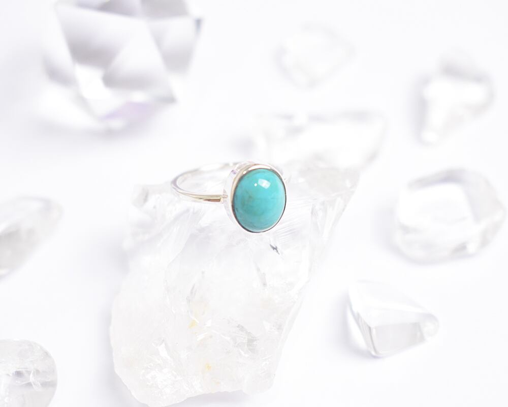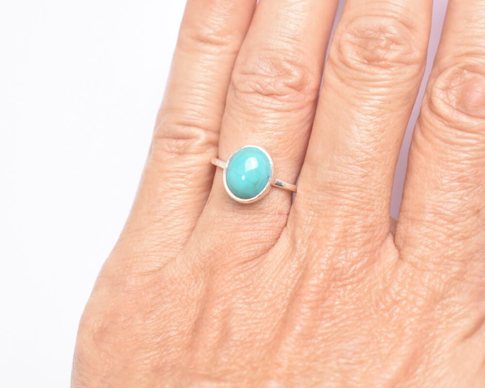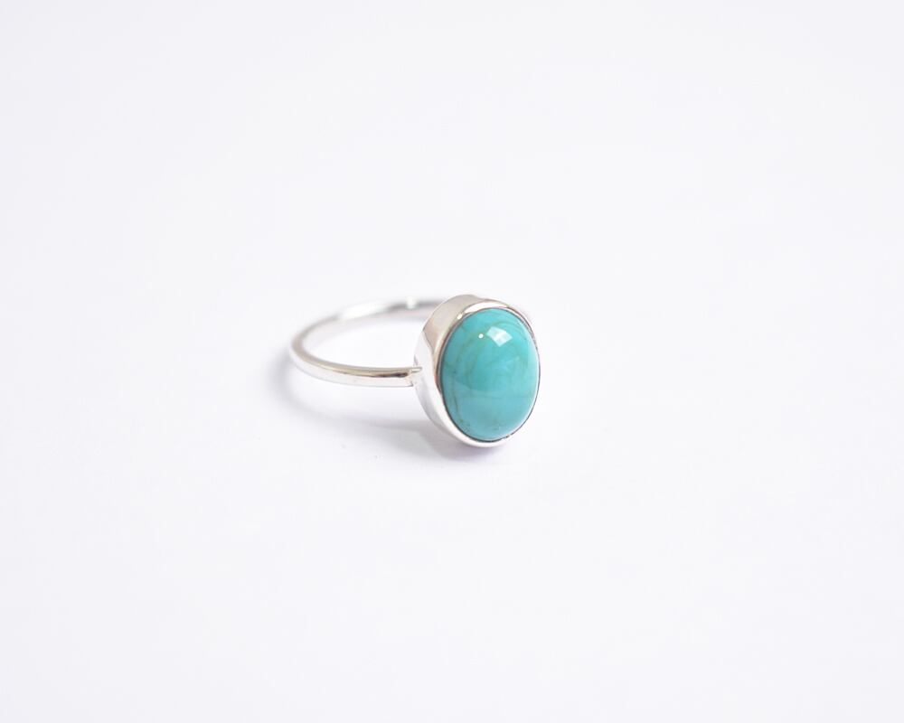 シンプルで美しい水色のターコイズをあしらったリングです。