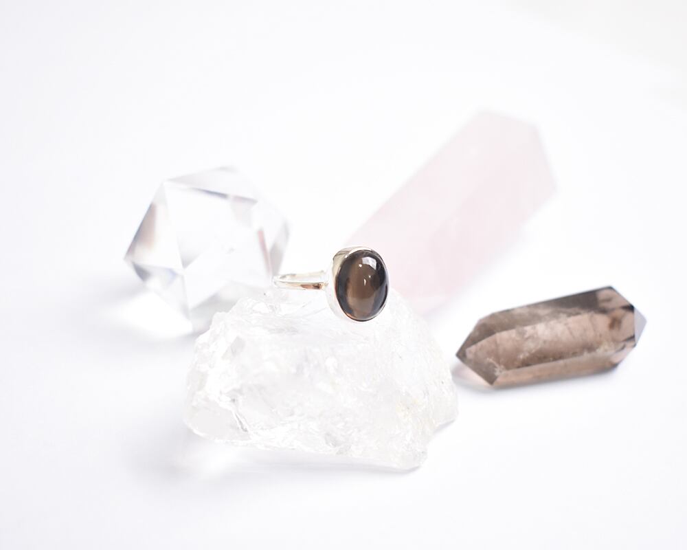 つるんとした質感が愛らしく、思わず触れたくなるなめらかな肌触りのスモーキークォーツのシルバー925リング。