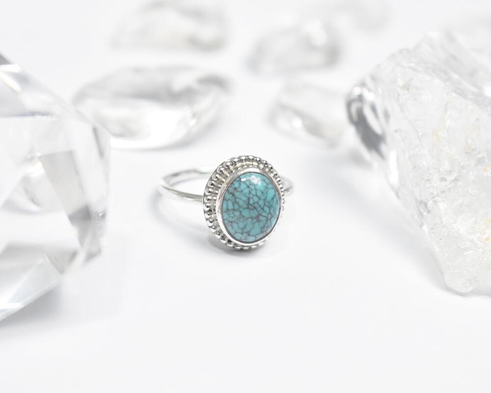 シンプルなターコイズのリングにシルバーのつぶつぶの装飾を丁寧に施しました。