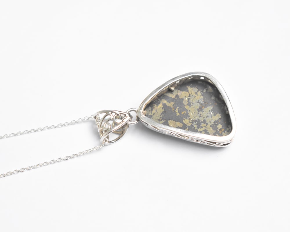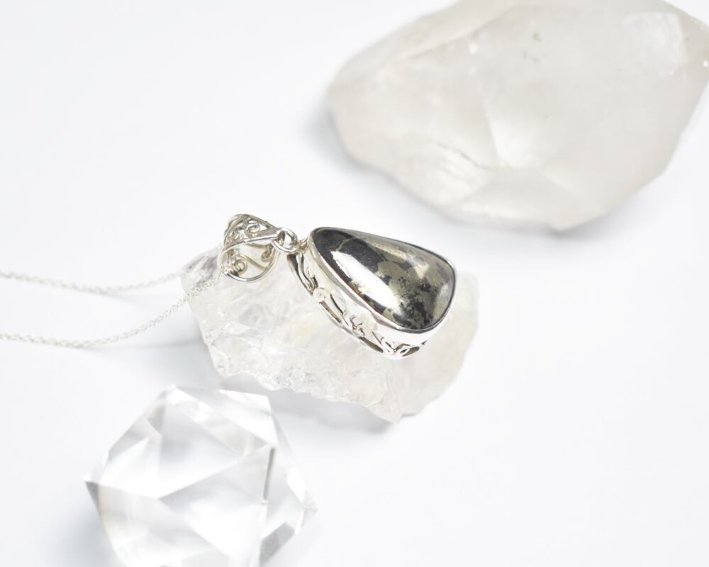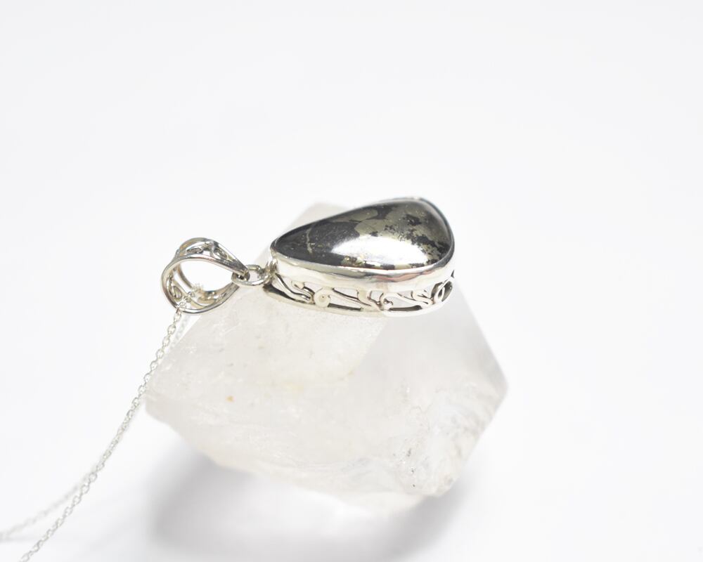 パイライトを包み込むシルバーの台座は、オリジナルでデザイン。