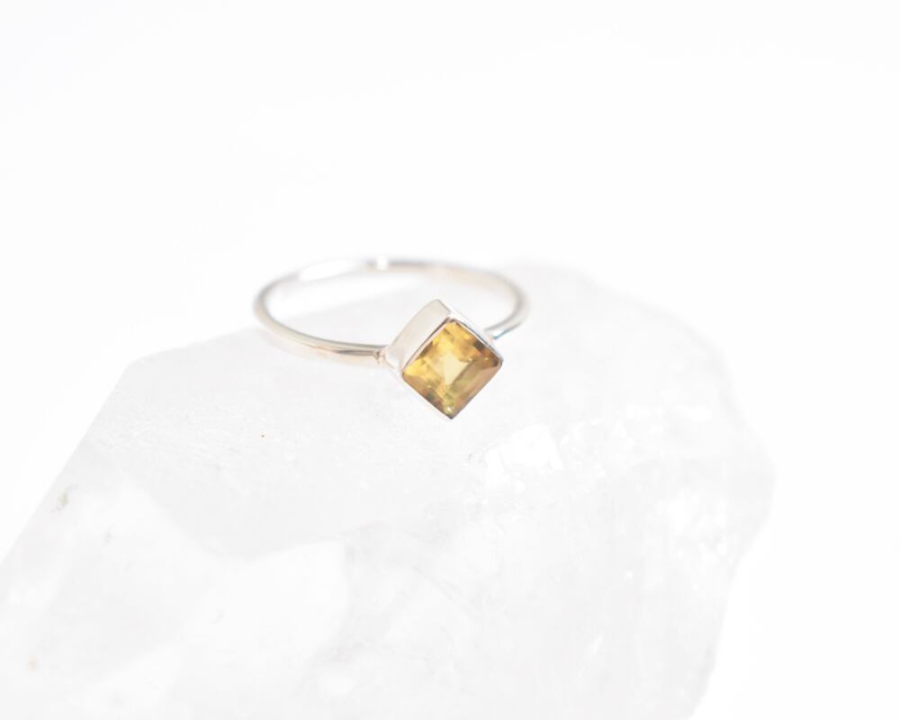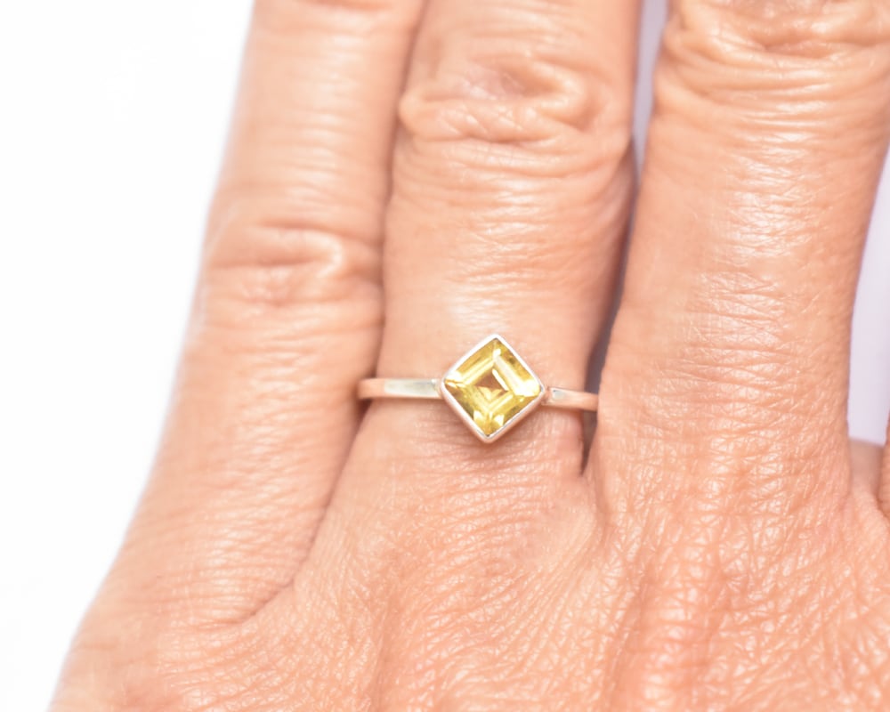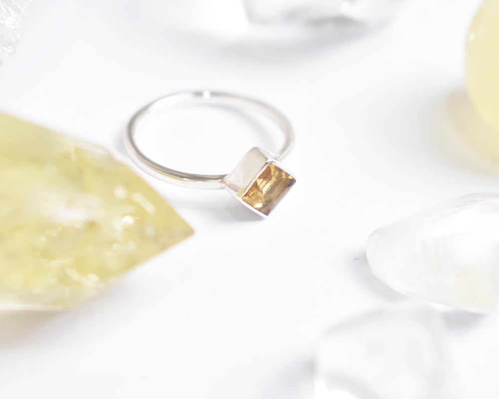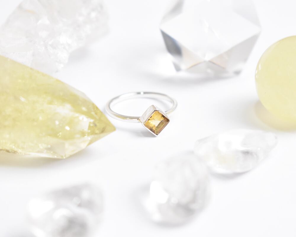 今回は、小さな正方形のシトリンをシルバーのリングにシンプルに仕立てました。