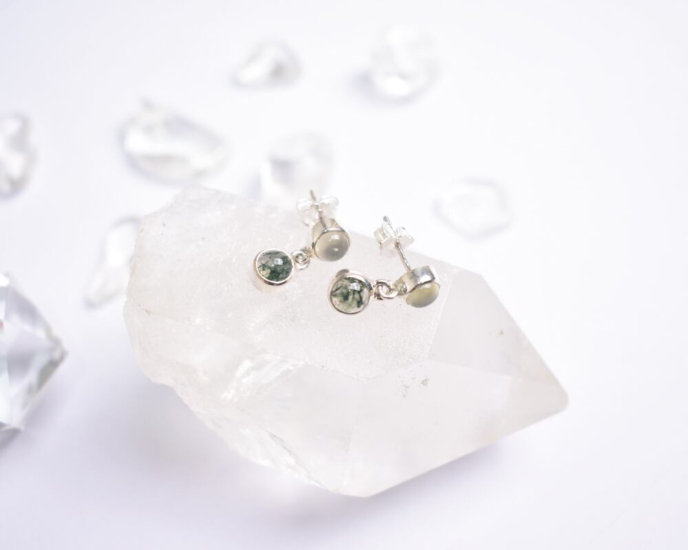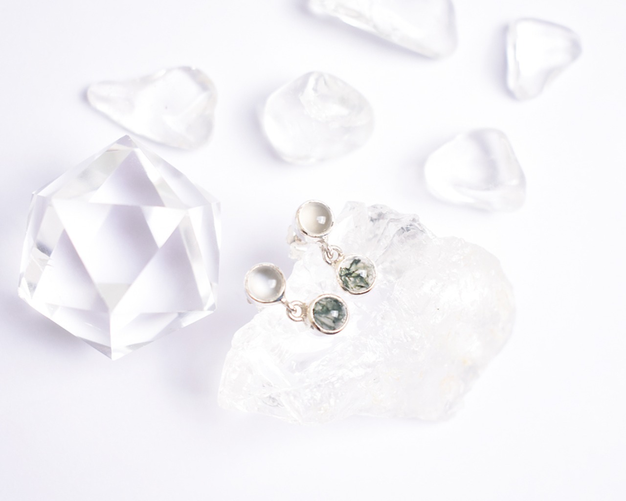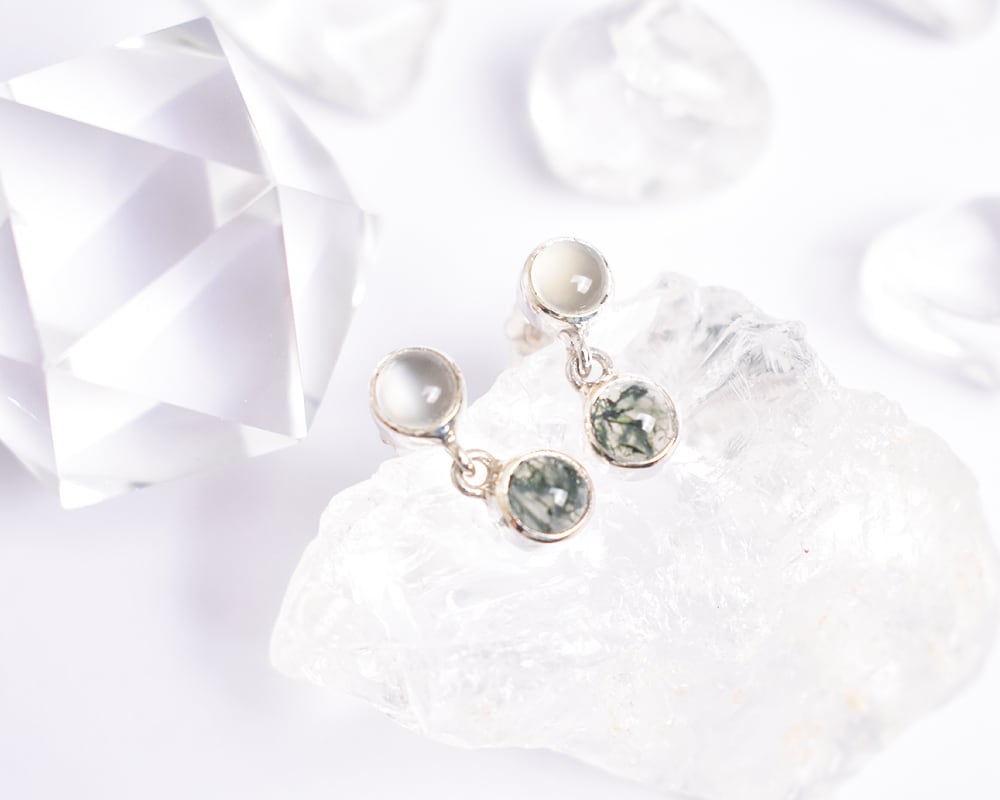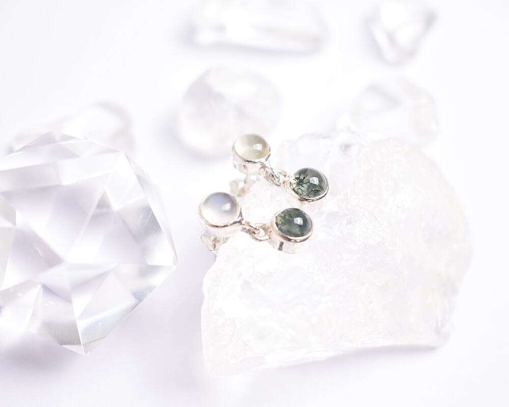 森の中の静けさを閉じ込めたようなモスアゲートと、月の光をやさしく映すムーンストーン。