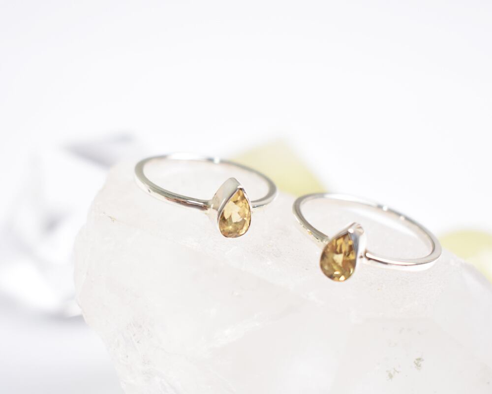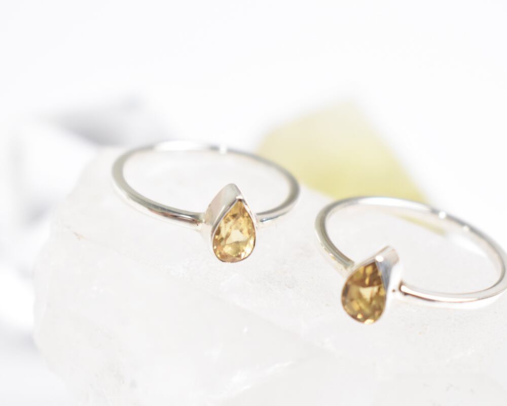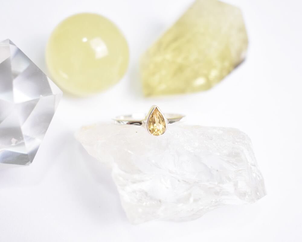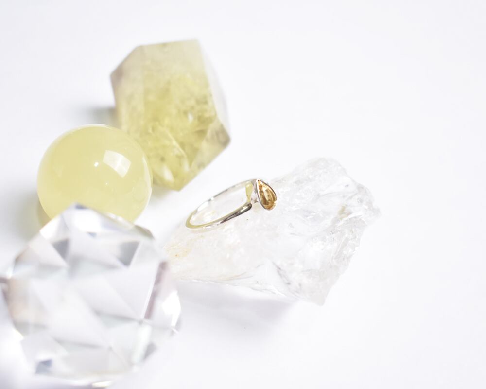 今回は、しずく型の小さなシトリンを、シルバーのリングにシンプルに仕立てました。