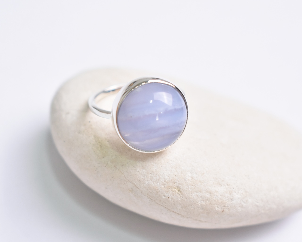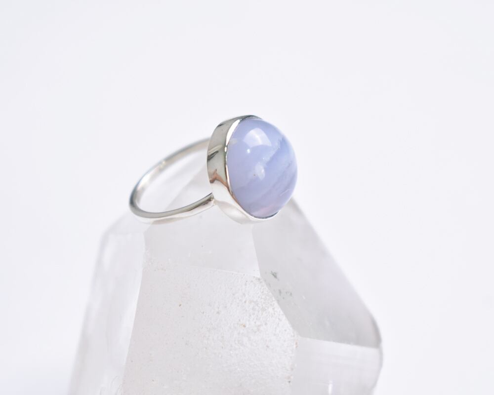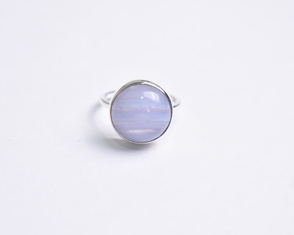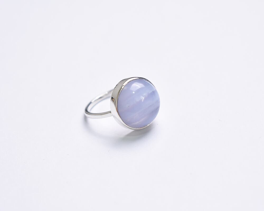 カボションカットのつるんとした丸い形が可愛らしいブルーレースアゲート。