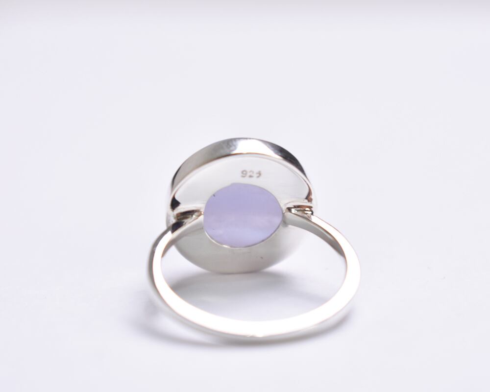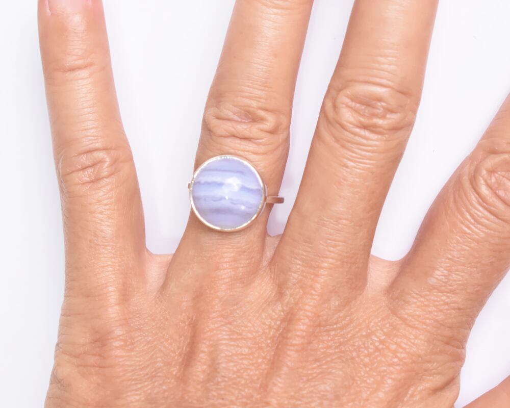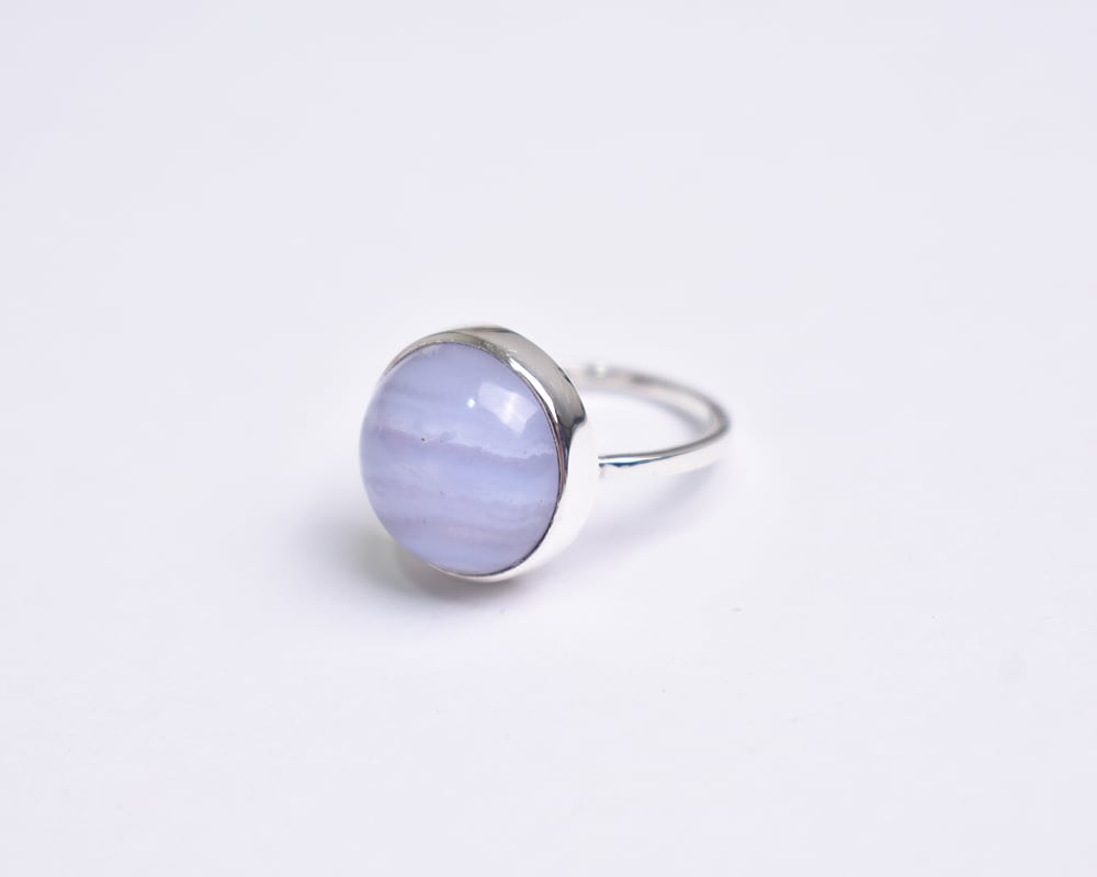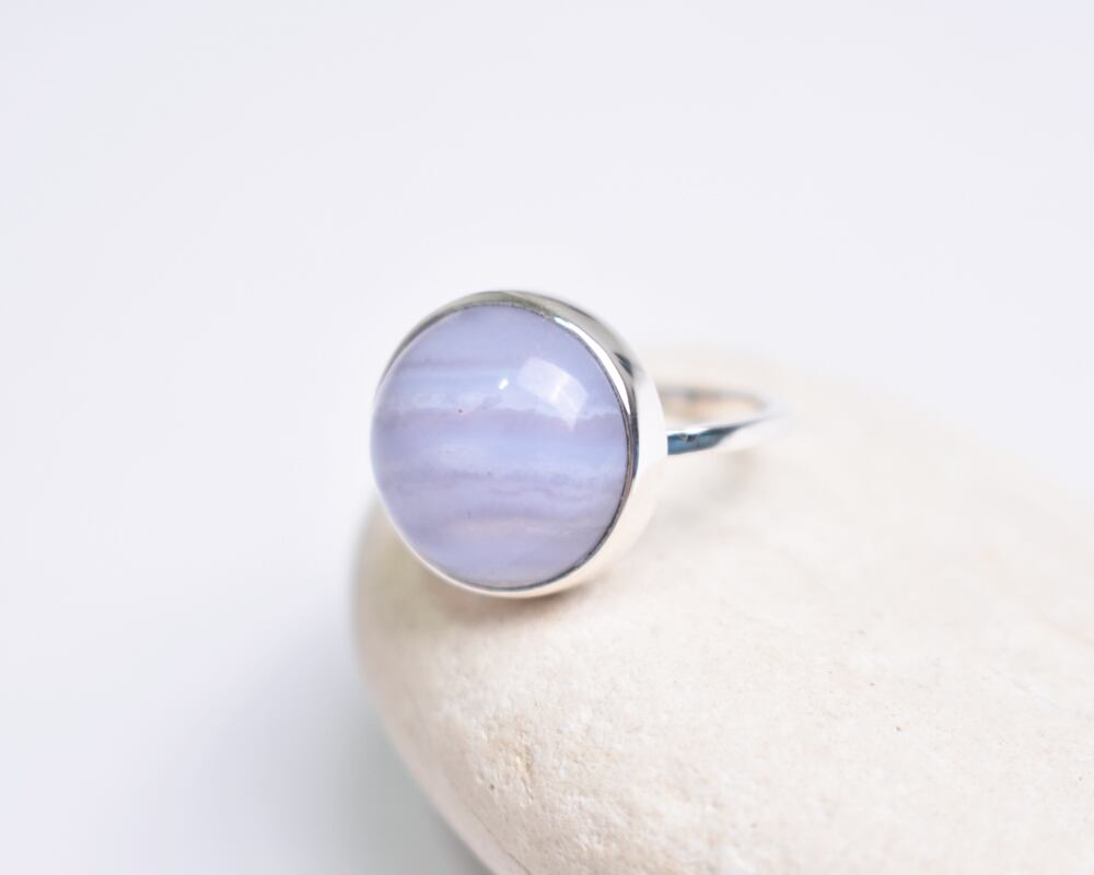 カボションカットのつるんとした丸い形が可愛らしいブルーレースアゲート。