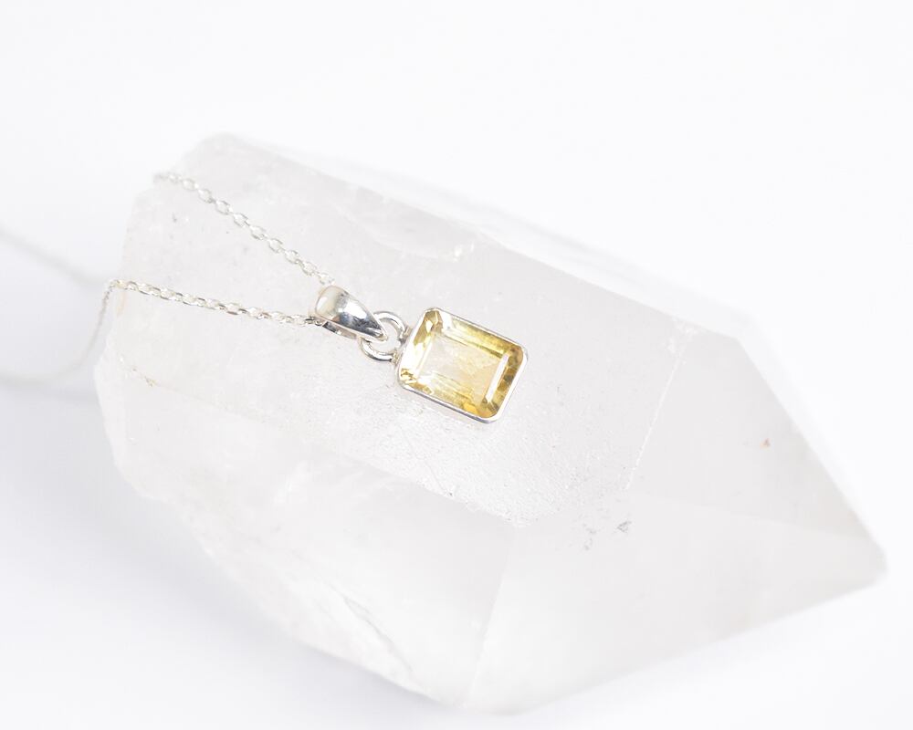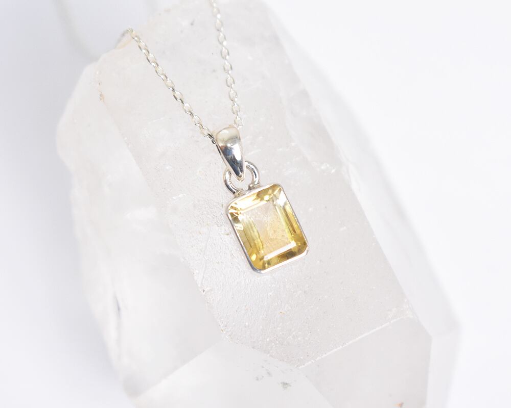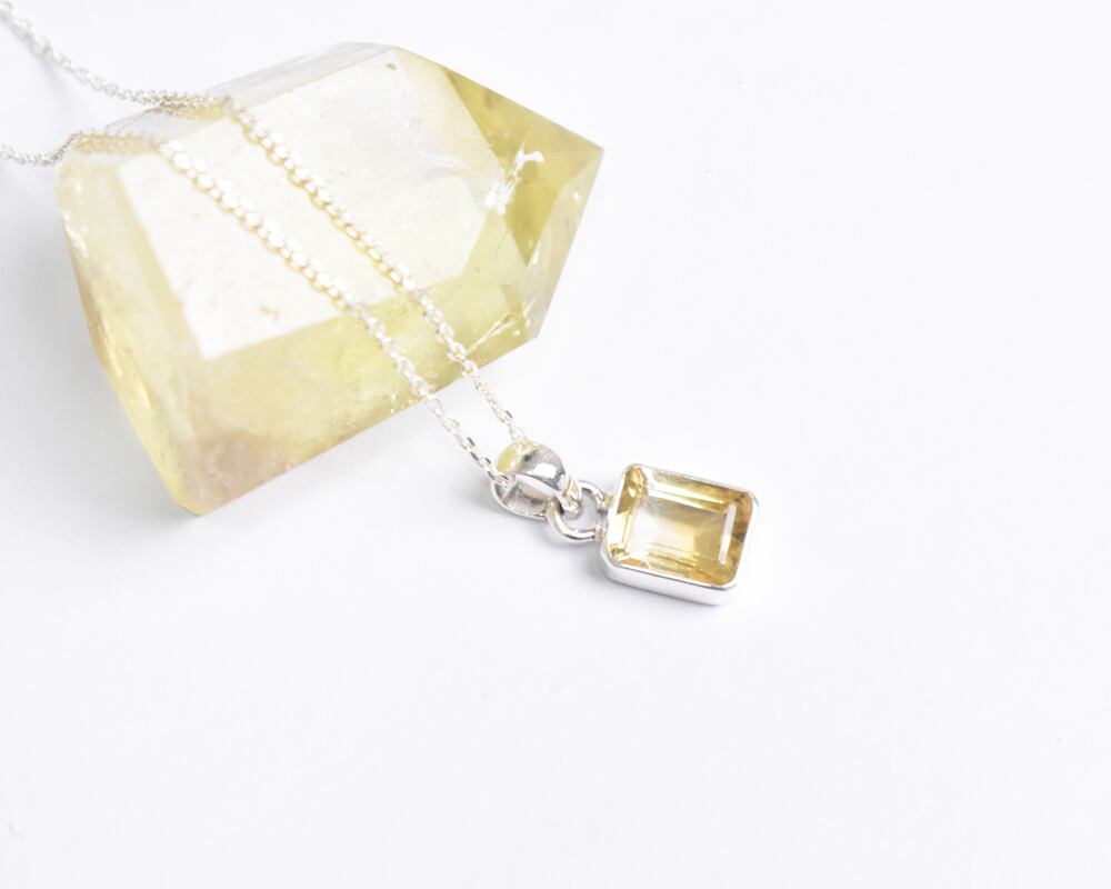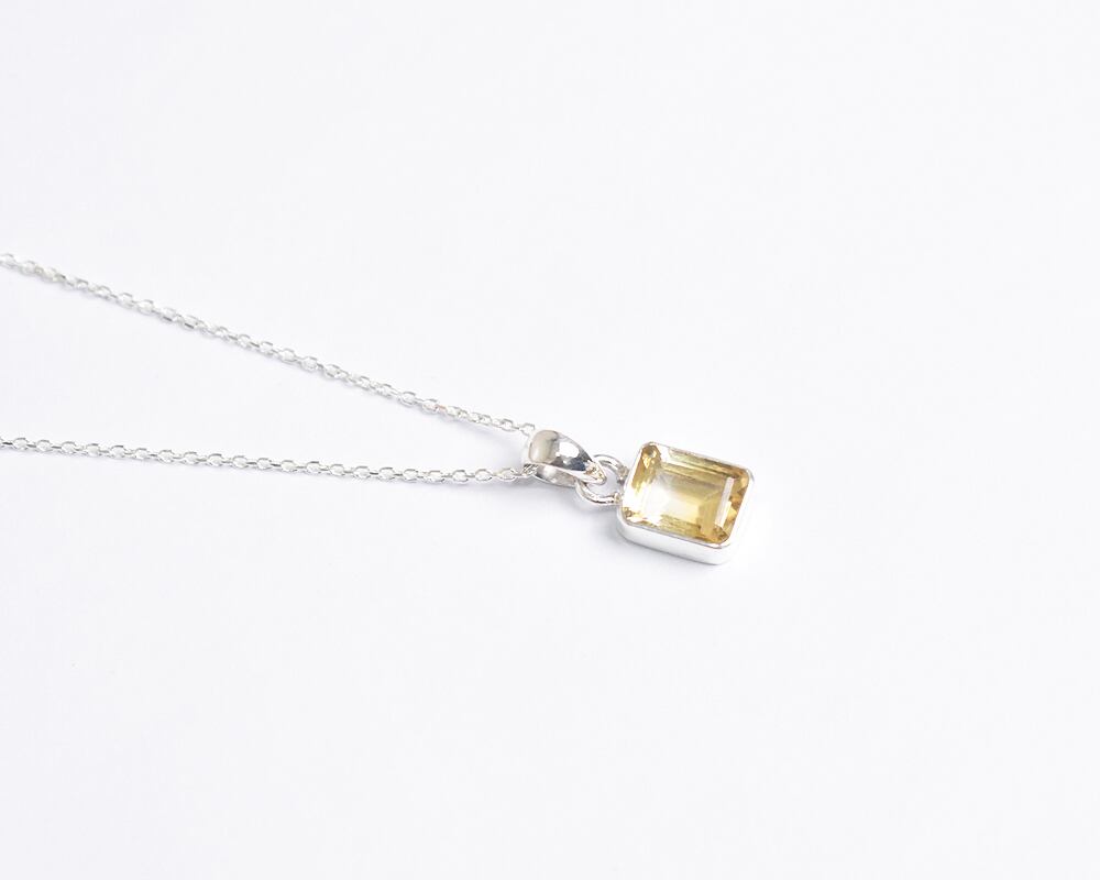 長方形(レクタングル)に丁寧にカットされた天然シトリンは、透明感と輝きが際立ち、光を受けるたびにキラキラと美しい表情を見せてくれます。