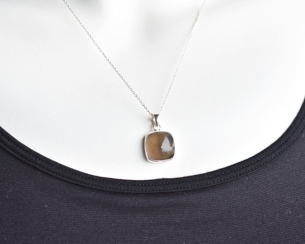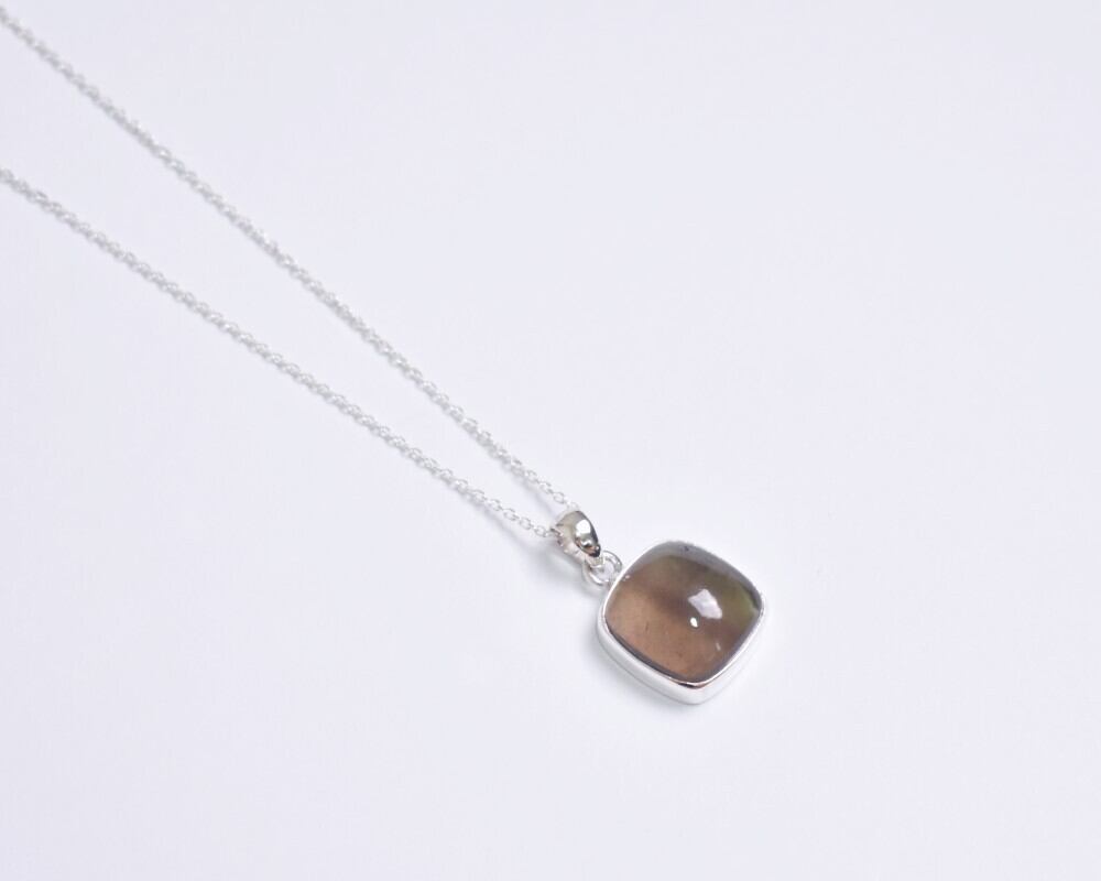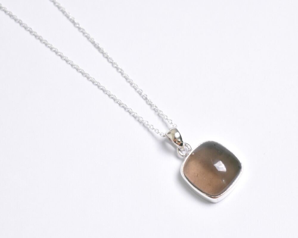 つるんとした質感が愛らしい、思わず触れたくなる、なめらかな肌触りのスモーキークォーツのシルバー925ネックレス。