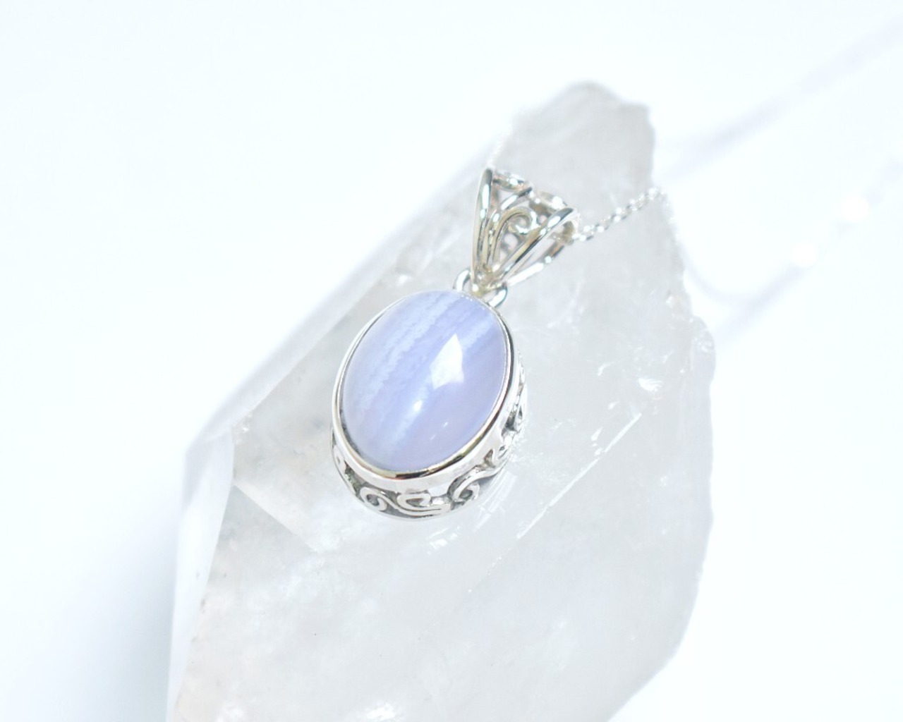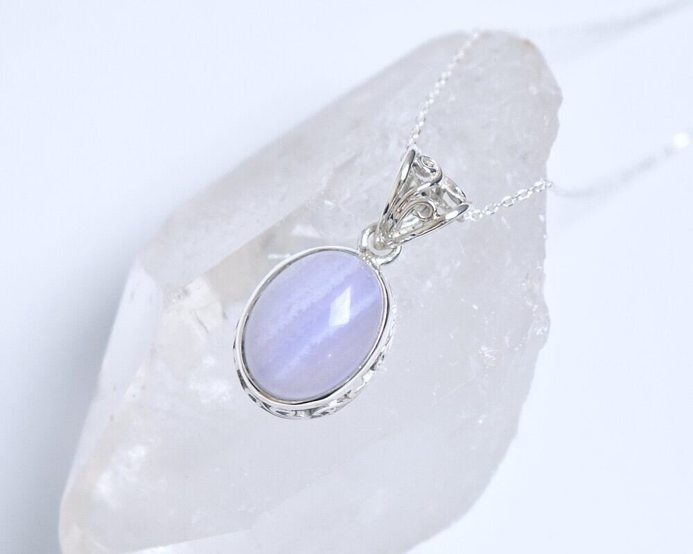 熟練の職人の卓越した技術が、ブルーレースアゲートの魅力を最大限に引き出します。