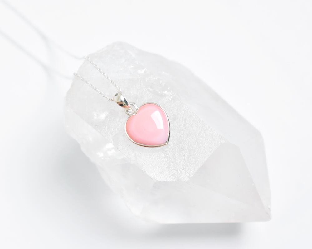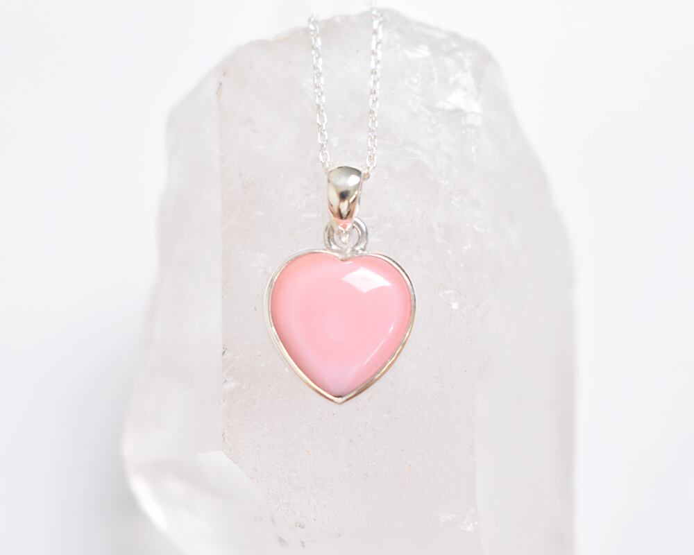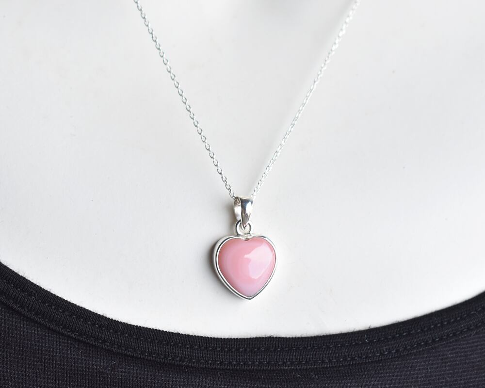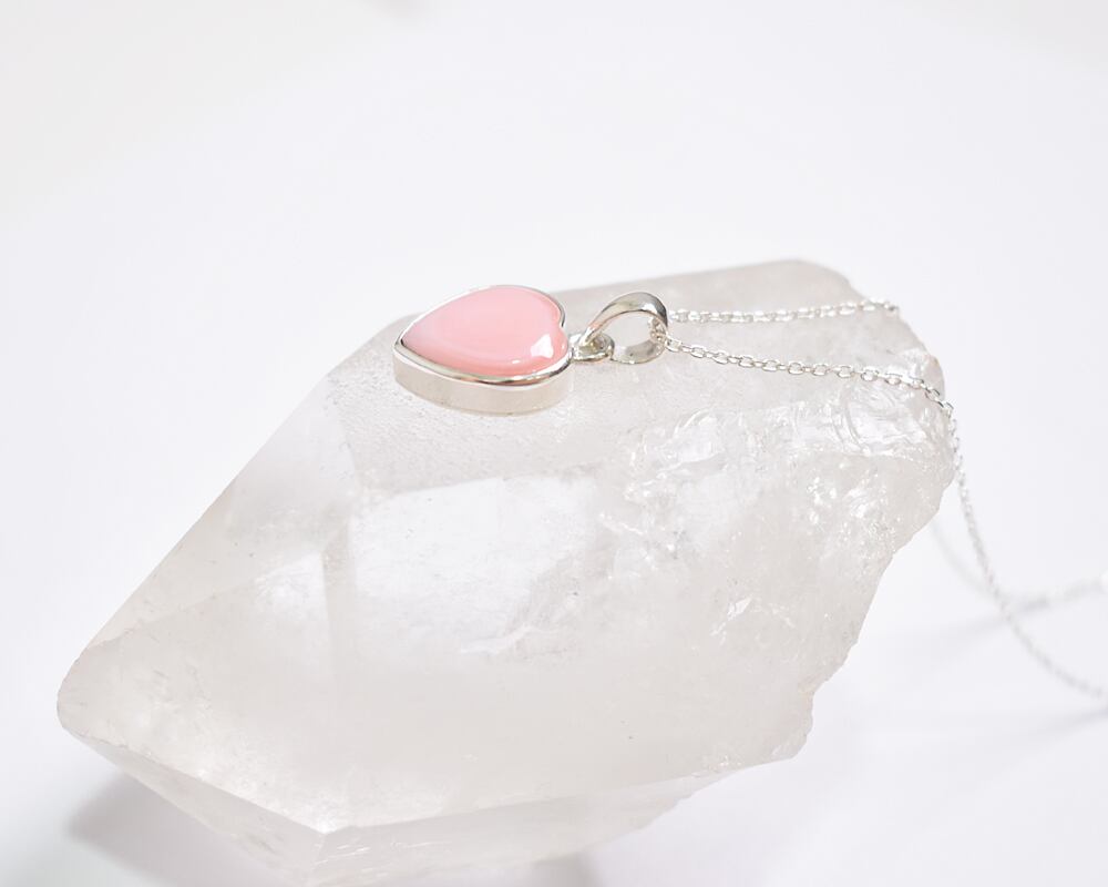 カリブ海の太陽を浴びて育った、希少なピンク色のクィーンコンクシェルを使ったハート型シルバーネックレスです。