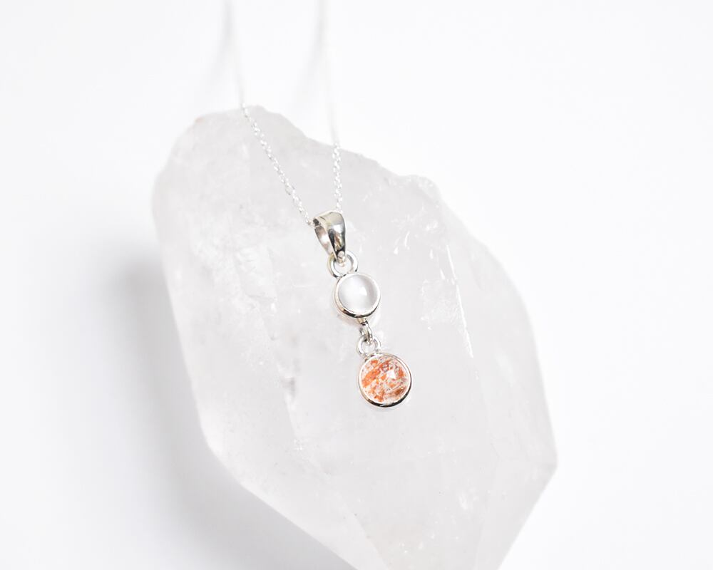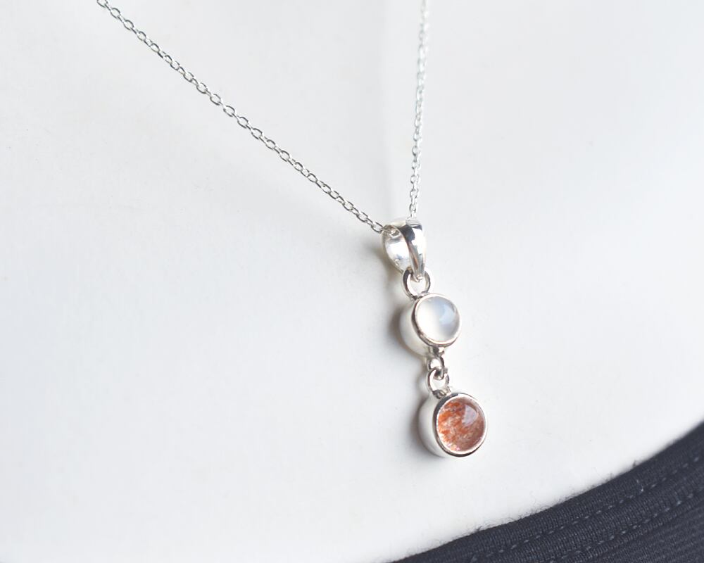 月と太陽の神秘的な輝きを表現した、ムーンストーンとサンストーンのシルバー925ネックレスです。