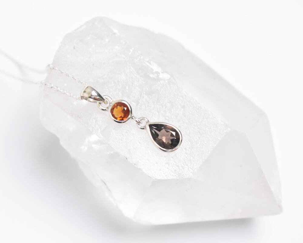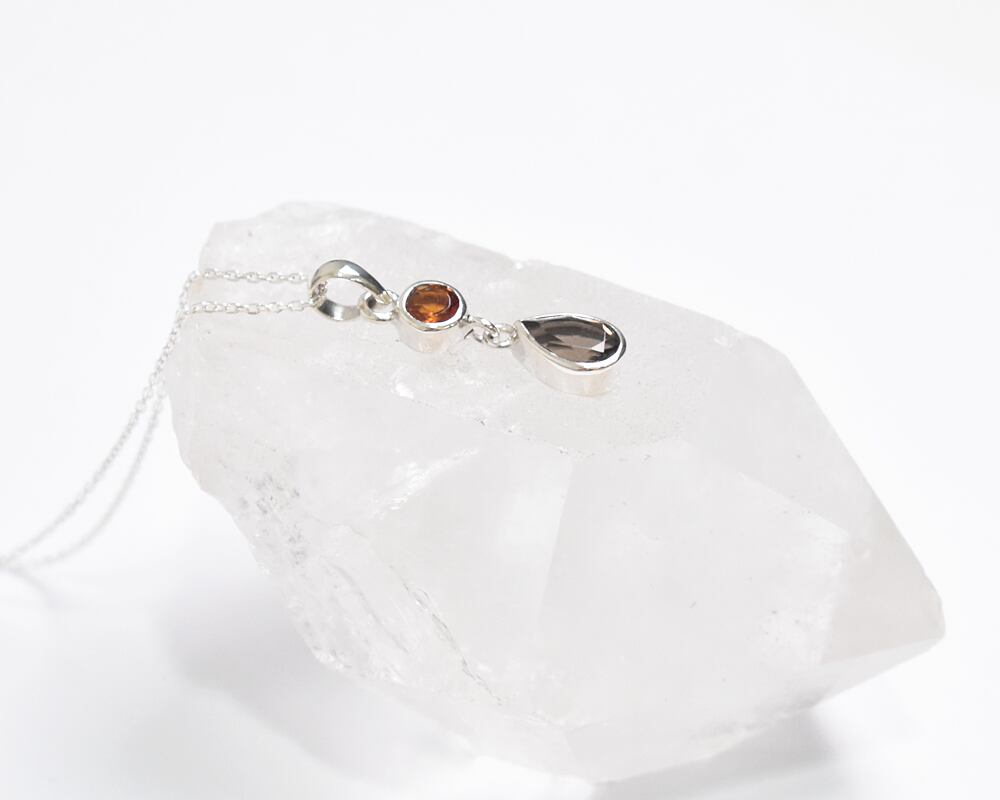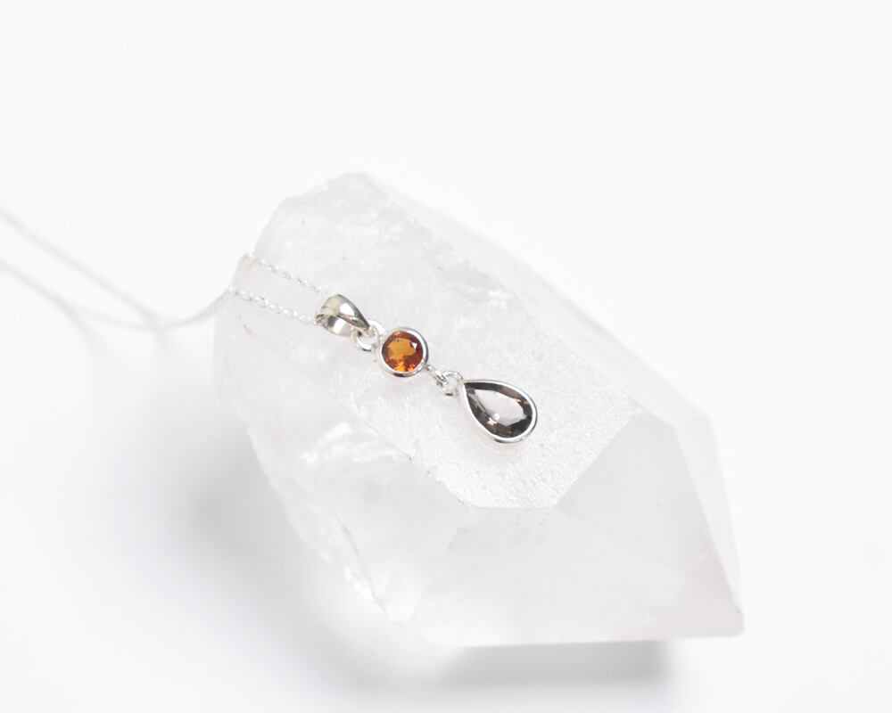 透き通る落ち着いたブラウンカラーがとても上品なスモーキークォーツとマデイラシトリンのシルバーネックレスです。
