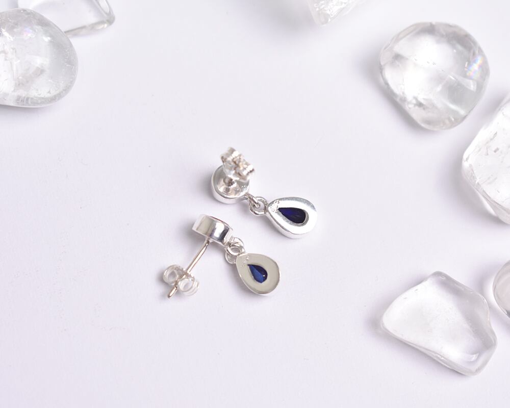 ブルーの天然石で大人の雰囲気のピアスを作りたいと思って今回選んだのは濃いブルーのサファイアと透明ピンクのルビーです。
