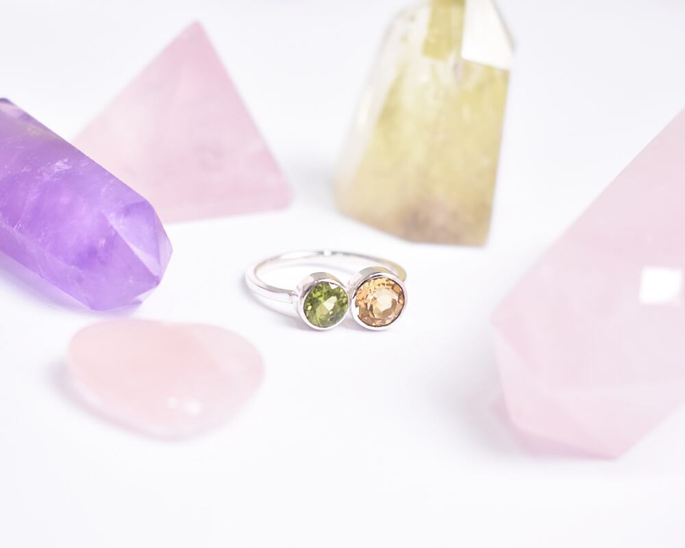 シトリンの温かみのある黄色と、ペリドットの爽やかな緑色が、心に安らぎを与えてくれます。