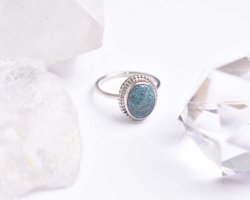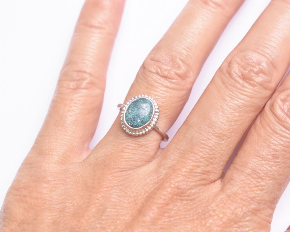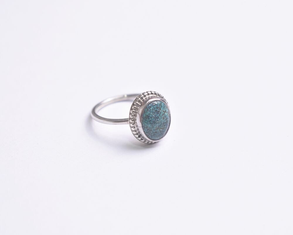 シンプルなターコイズのリングにシルバーのつぶつぶの装飾を丁寧に施しました。