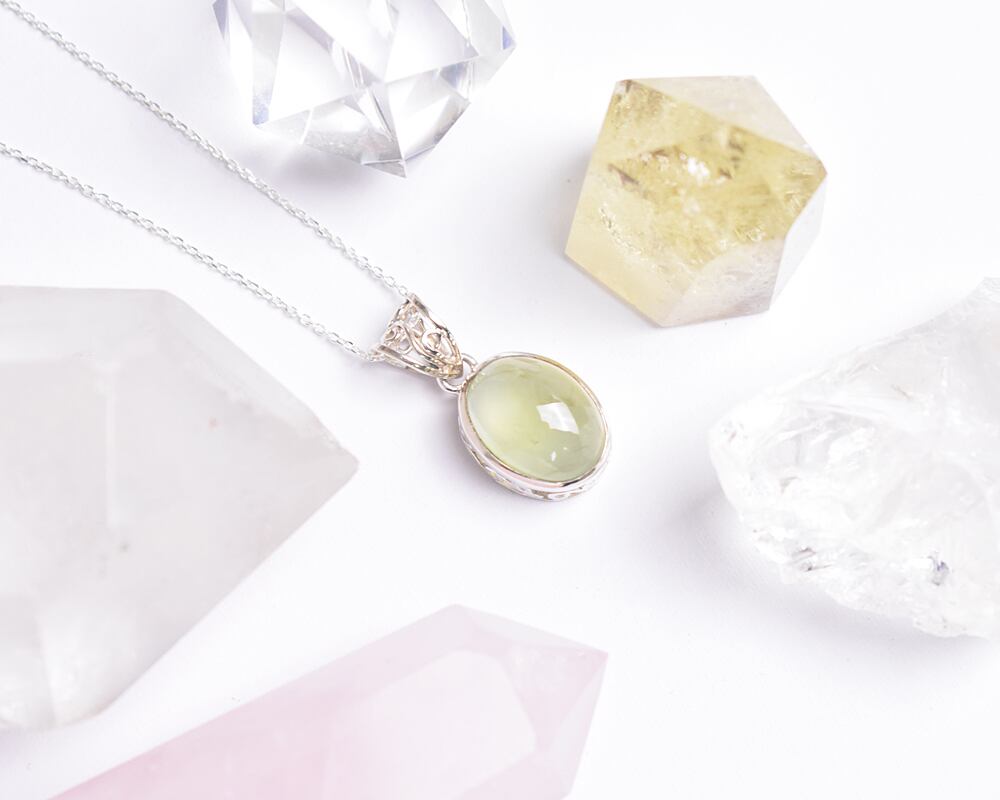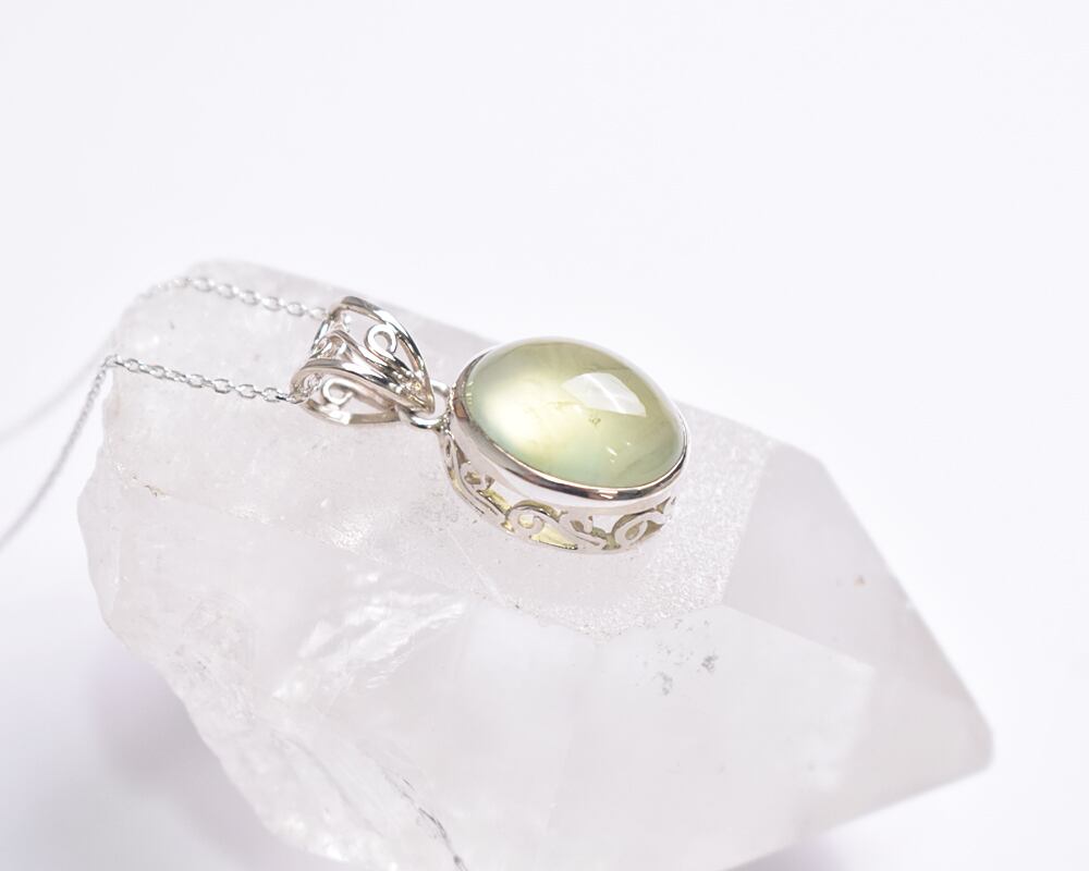 プレナイトのシルバーネックレス。