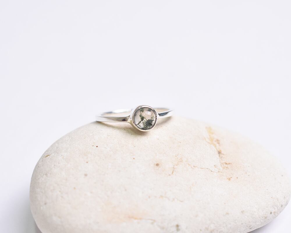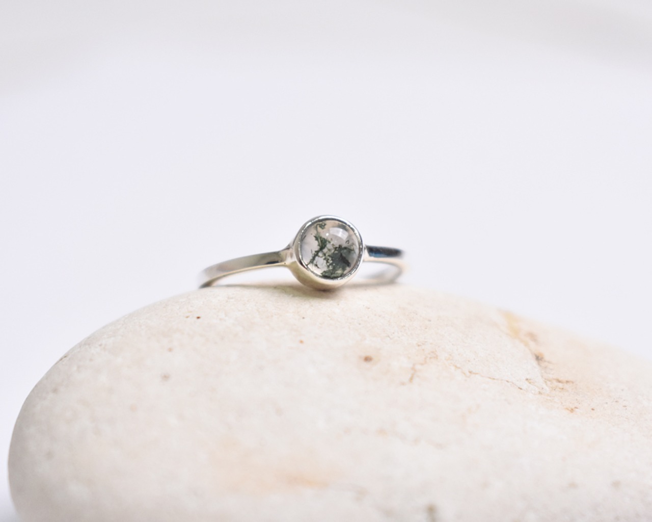 透明感のあるモスアゲートの小さな丸い粒が上品なシルバーリングに仕上がりました。