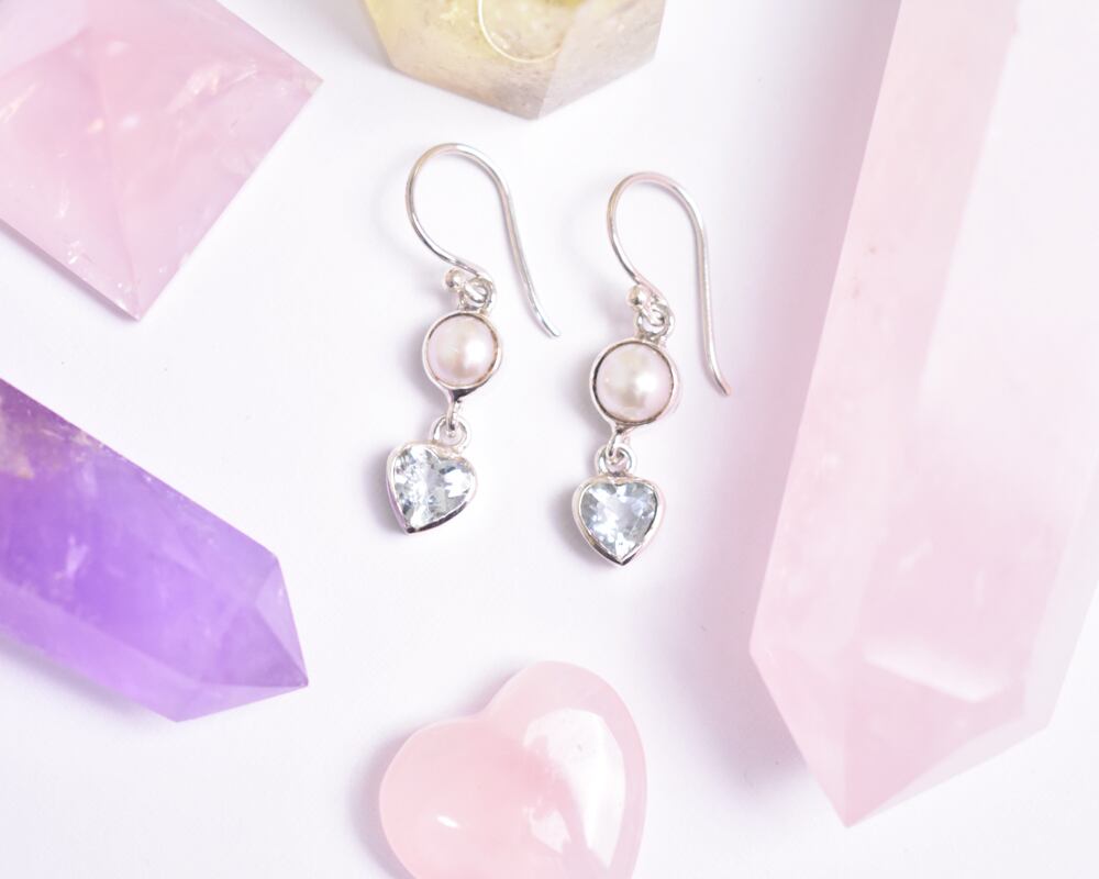 透明感のある美しいブルーが魅力のアクアマリンと上品な輝きを放つ淡水パールが揺れる可愛らしいシルバーピアス。