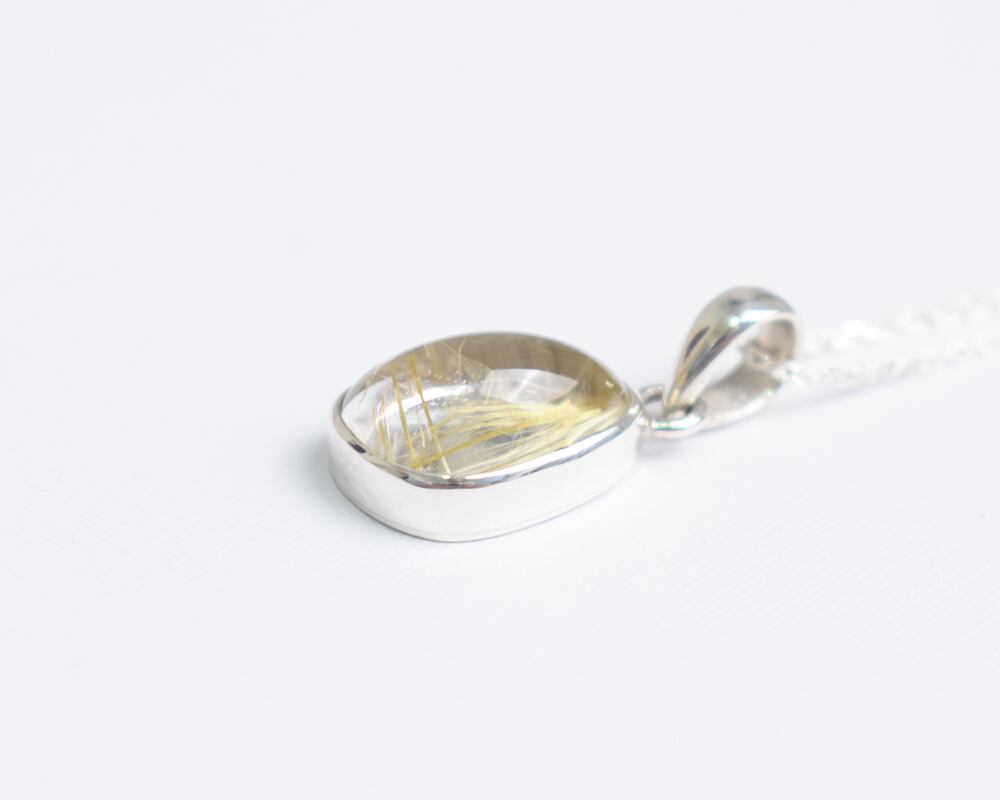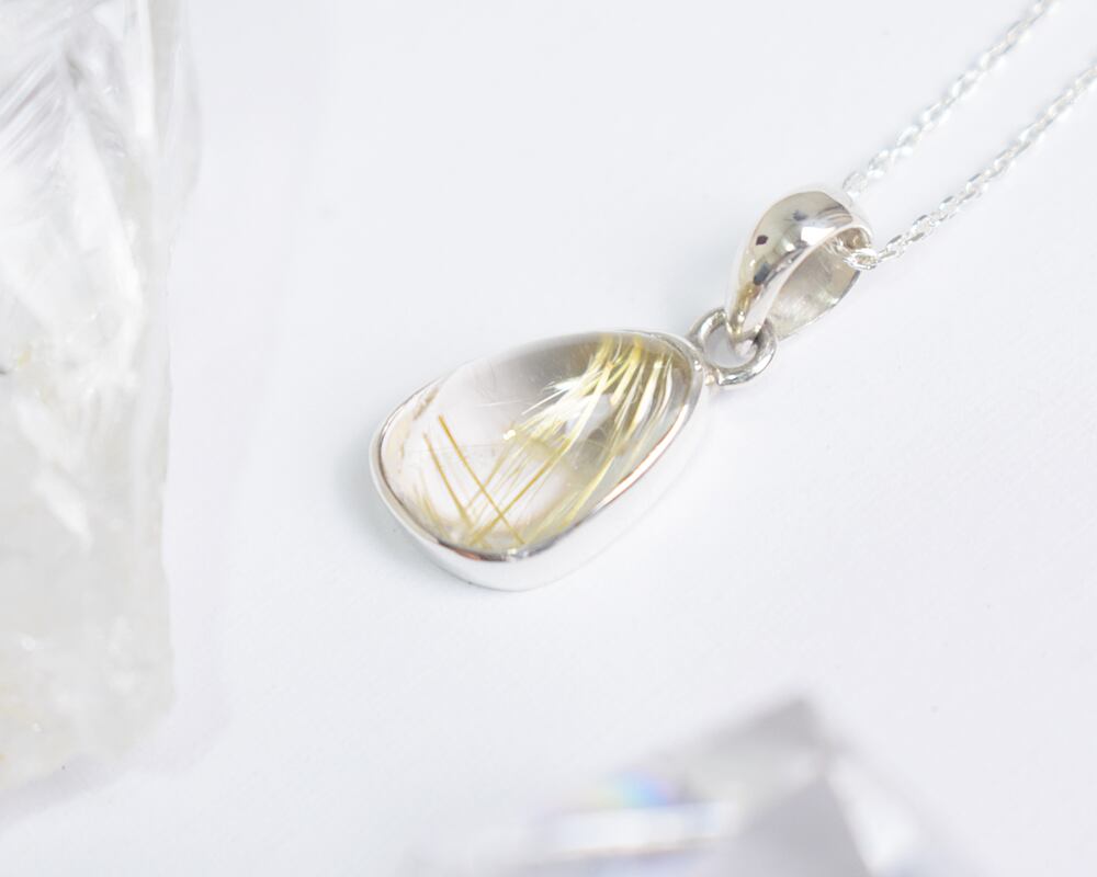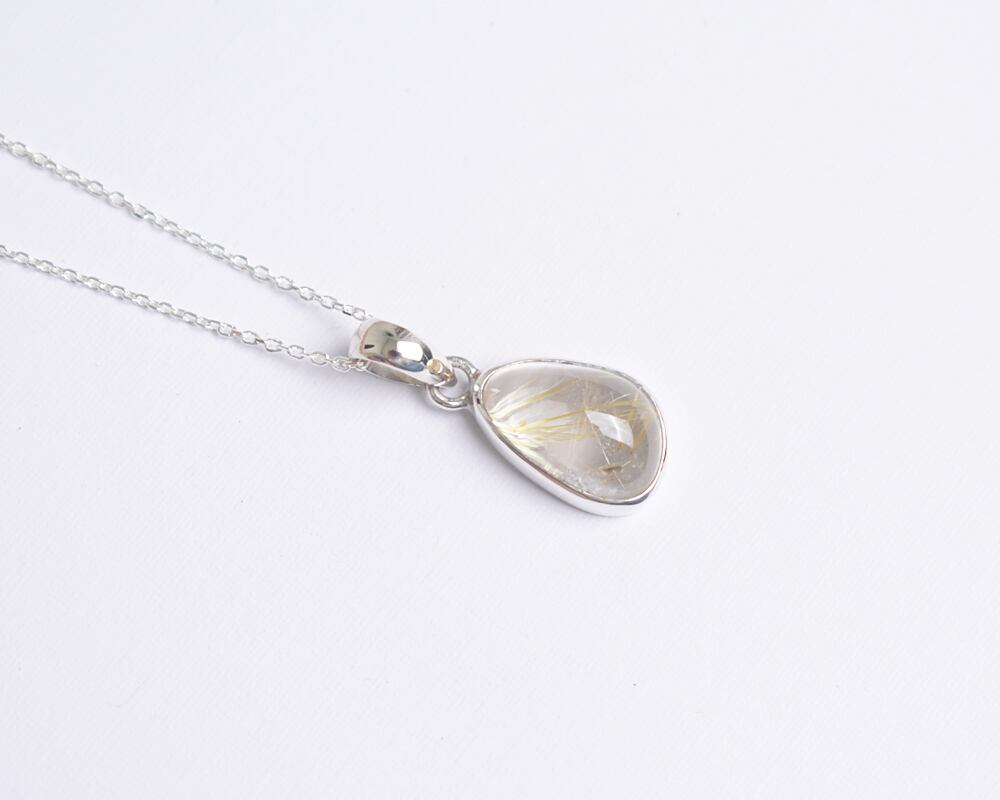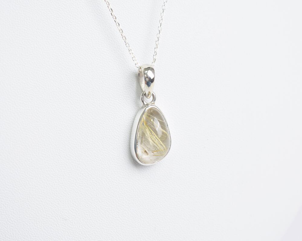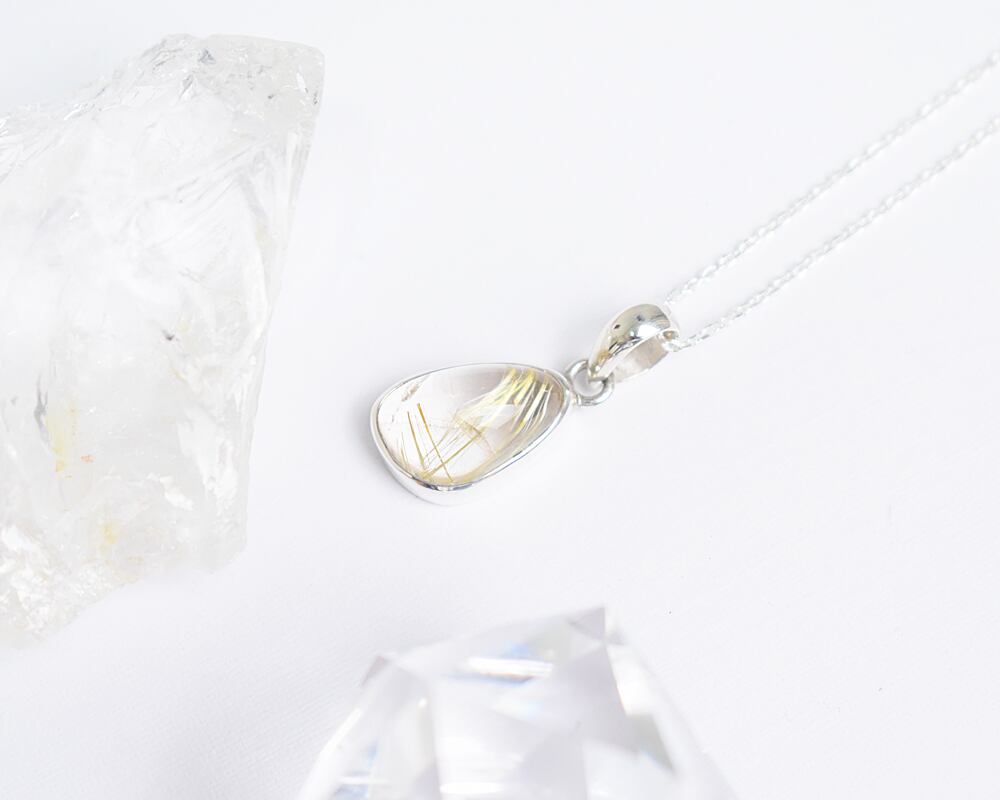 シンプルなシルバーのチェーンに個性的なルチルクォーツが揺れる、大人の女性のための特別なネックレスです。