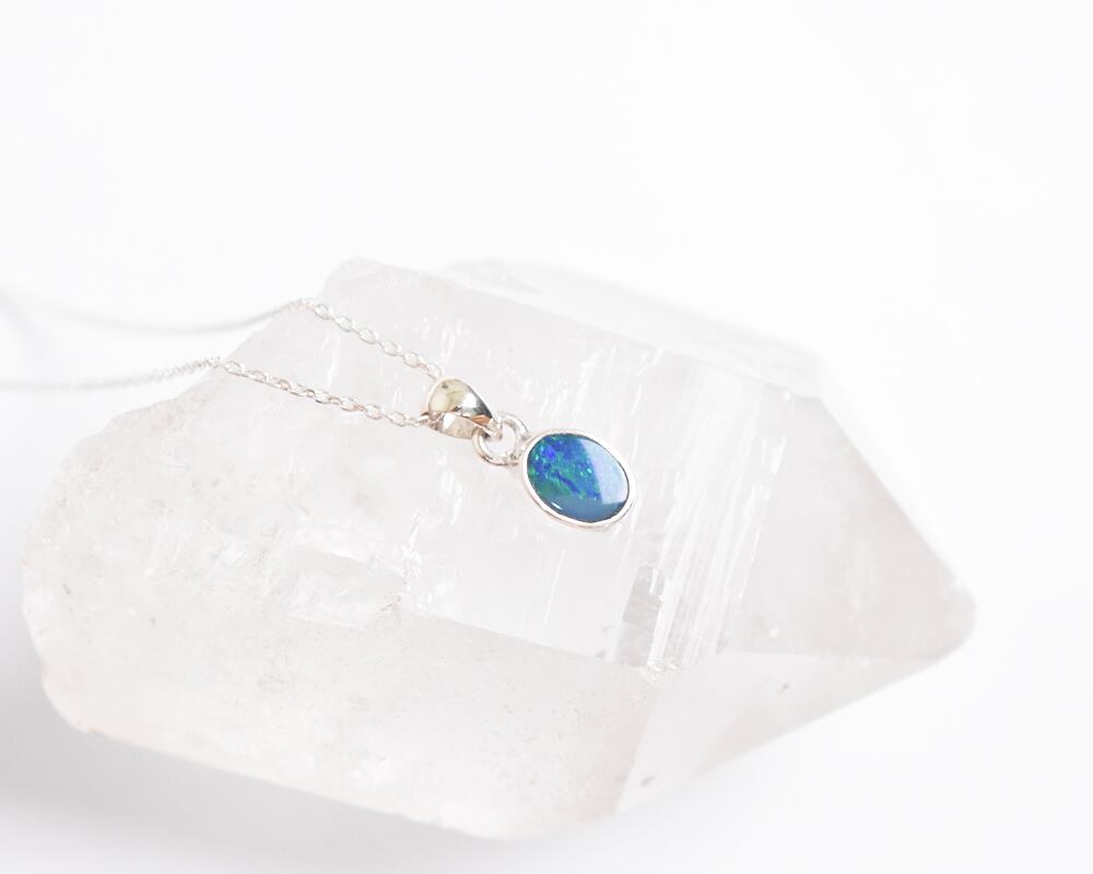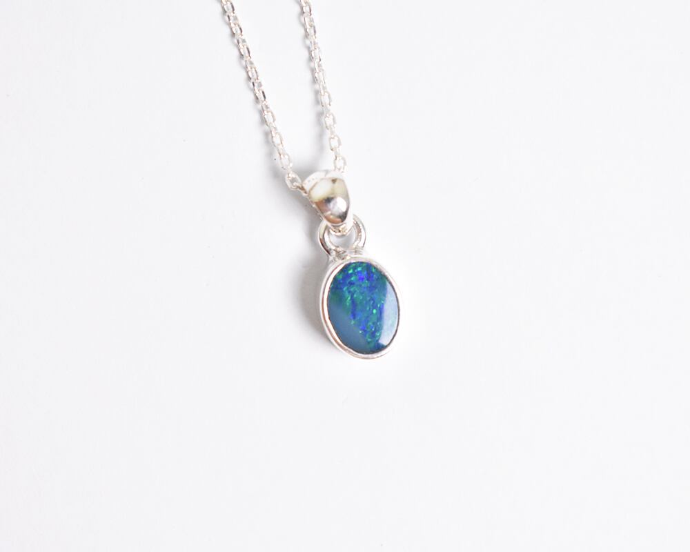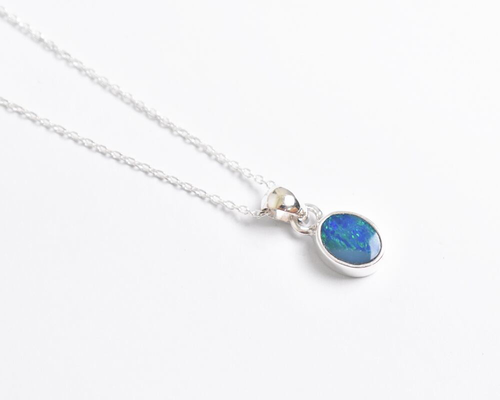 パッと目を惹く美しいブルーのオパールは世界に一つあなただけのネックレスです。