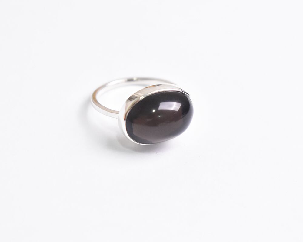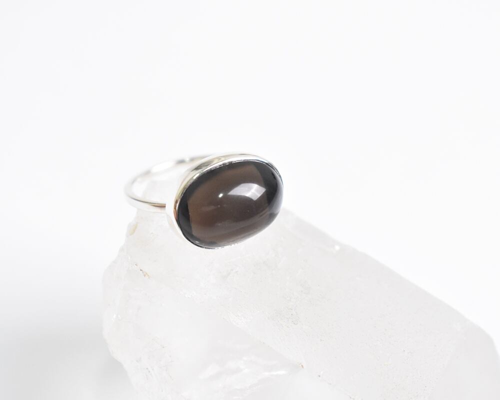つるんとした質感が愛らしい、思わず触れたくなるなめらかな肌触りのスモーキークォーツのシルバー925リング。
