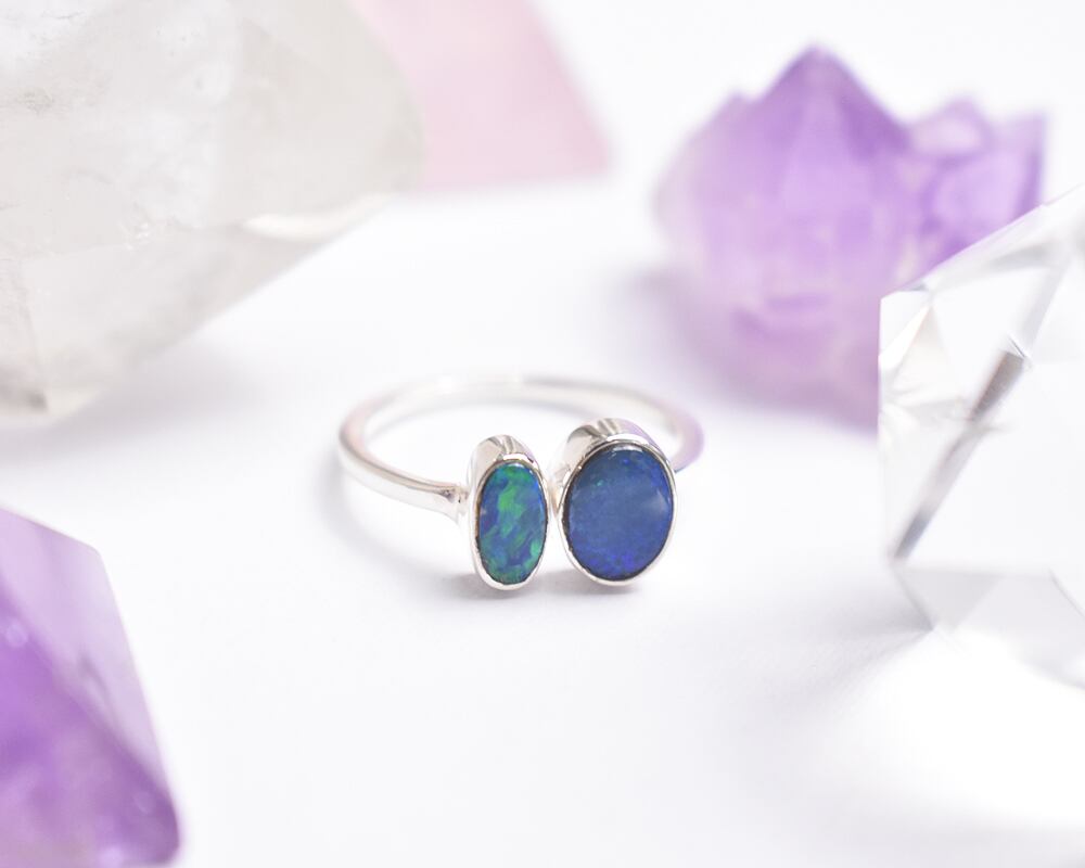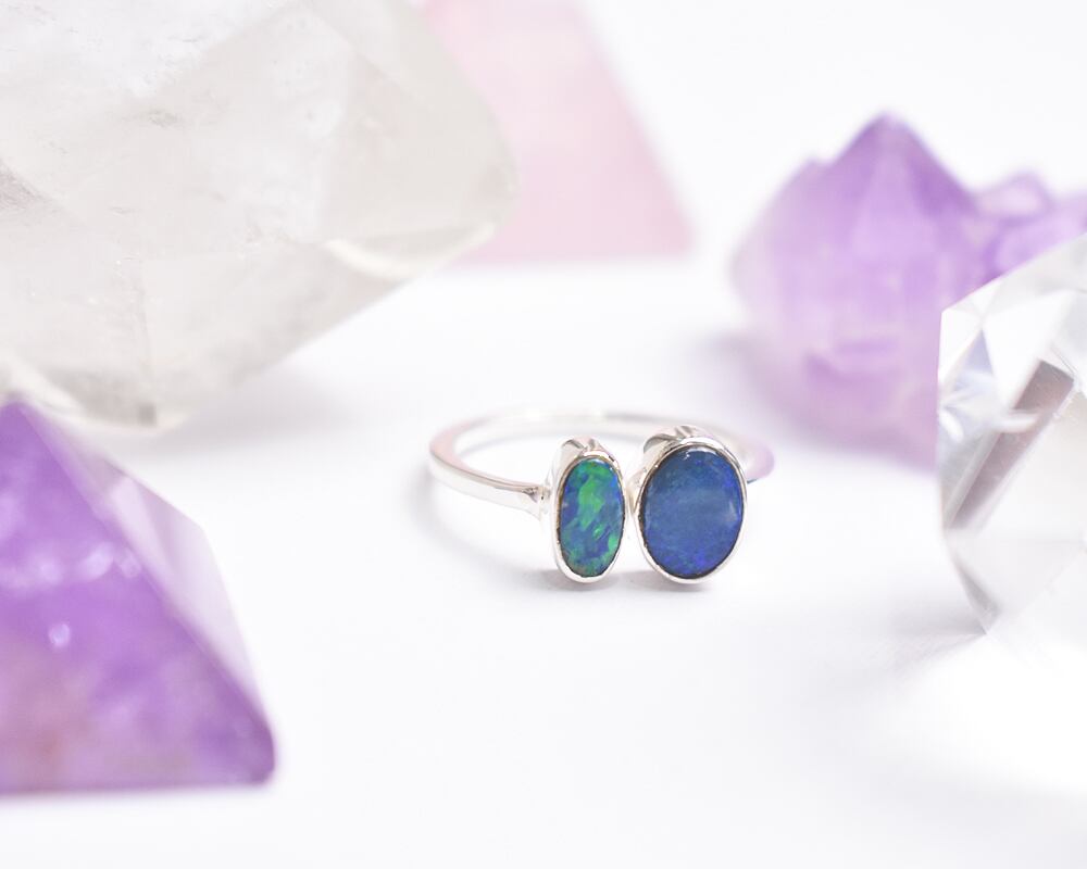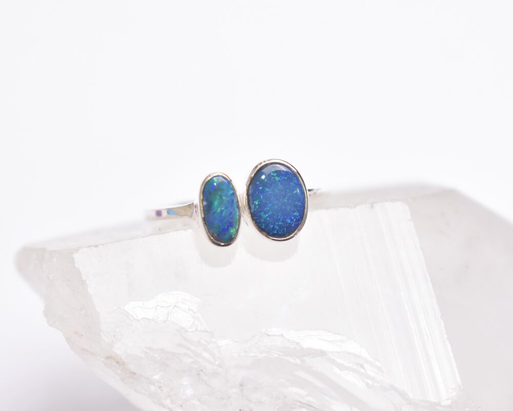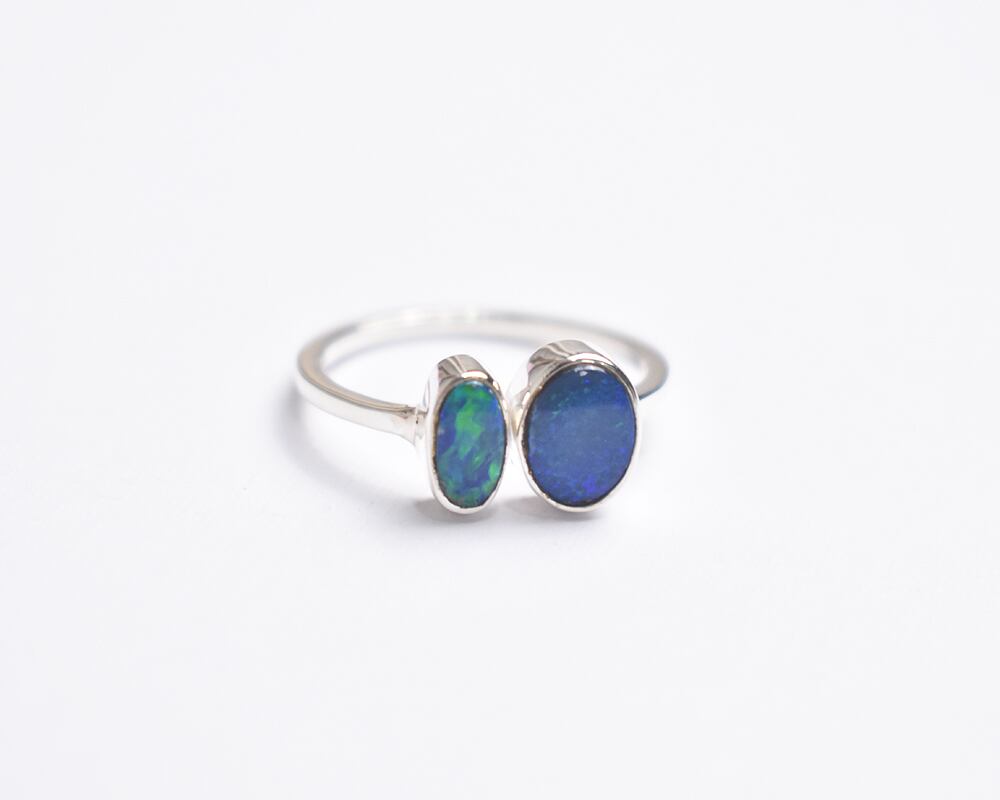 今回この美しいオパールを二つ組み合わせてとっても素敵なシルバーリングが出来上がりました。