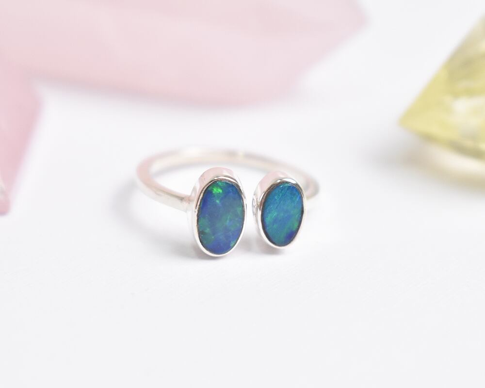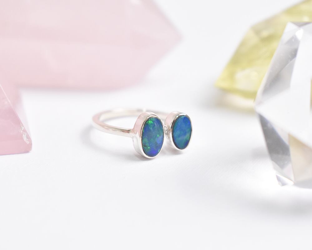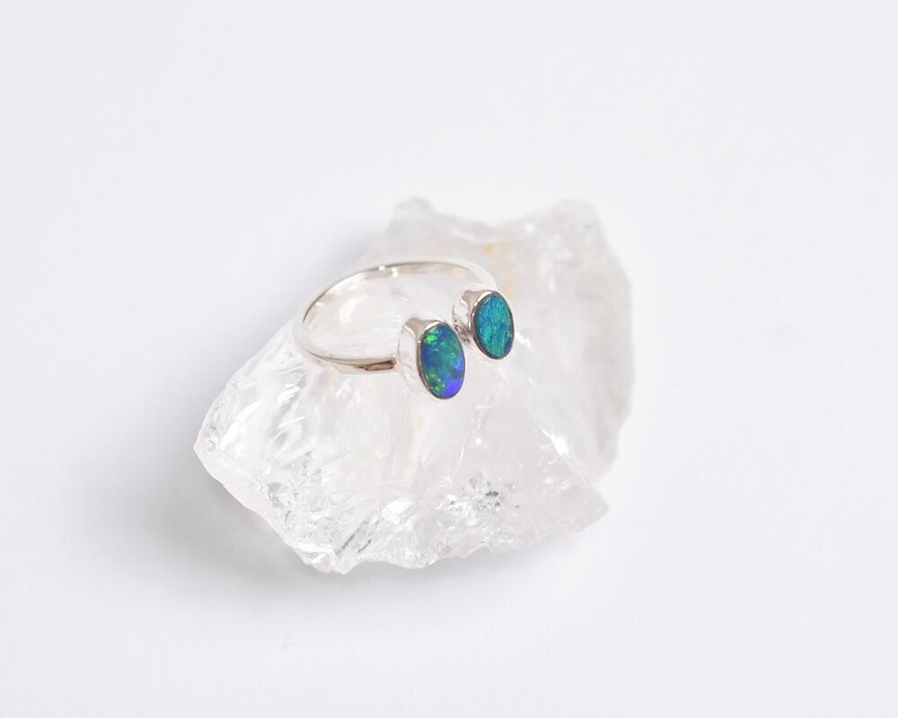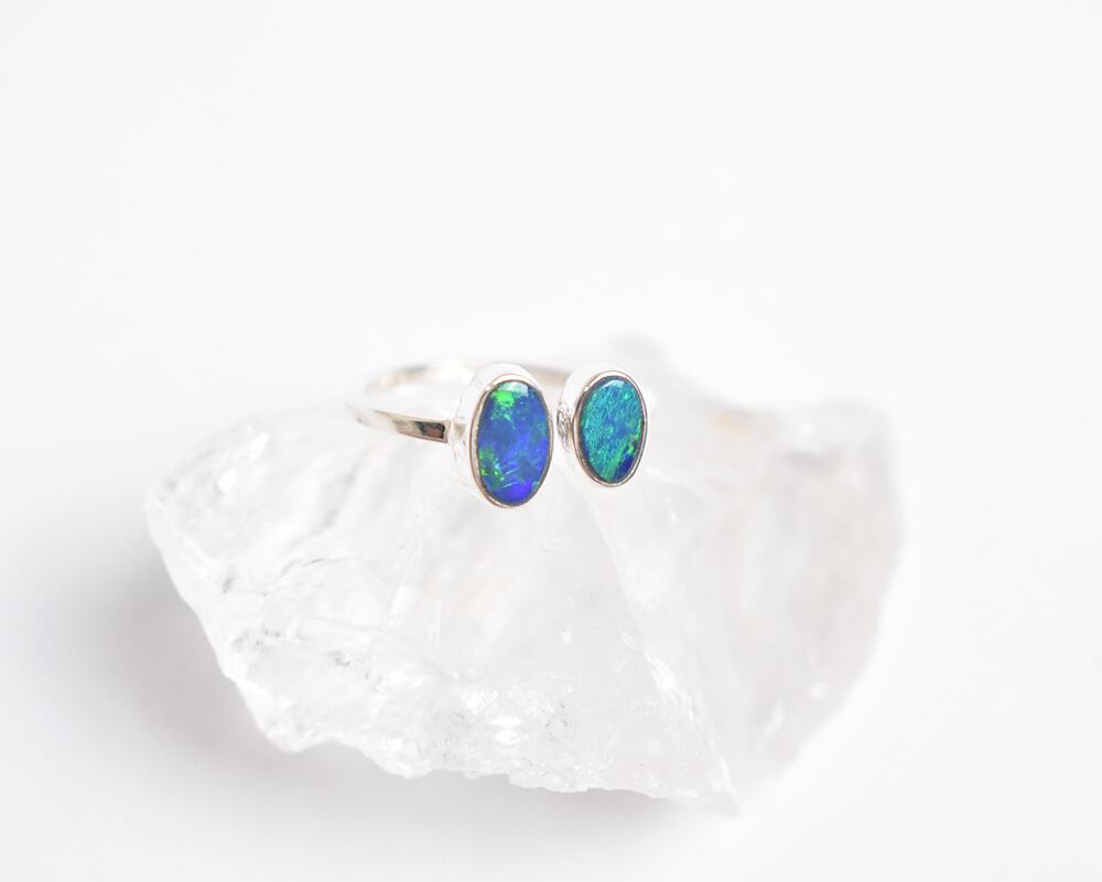 今回この美しいオパールを二つ組み合わせてとっても素敵なシルバーリングが出来上がりました。