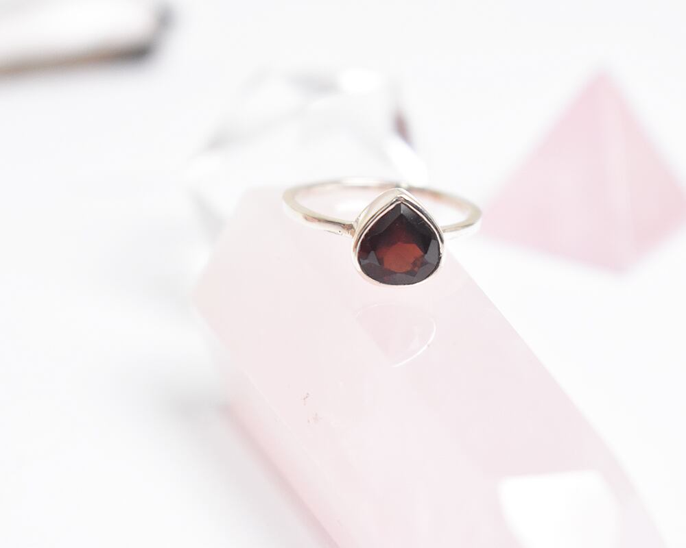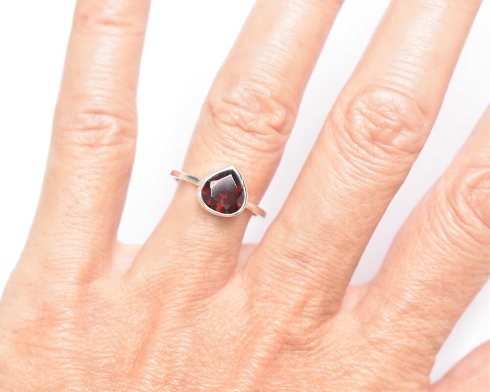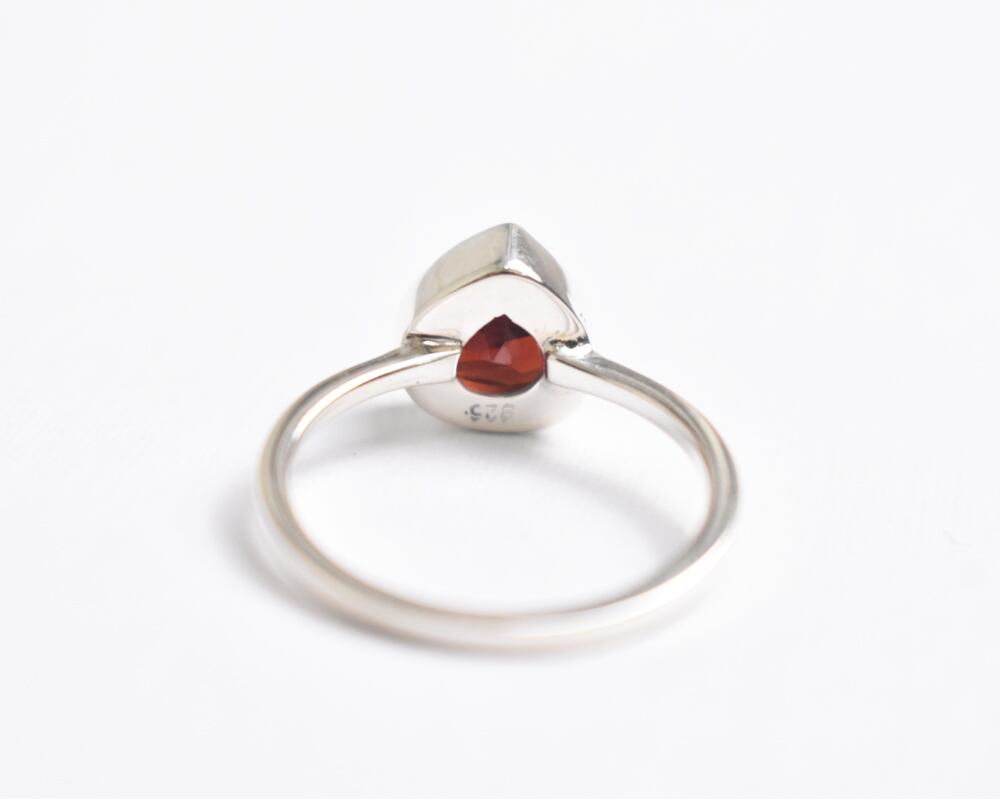 丸みを帯びたマロンカットのガーネットが指先を繊細に彩ります。