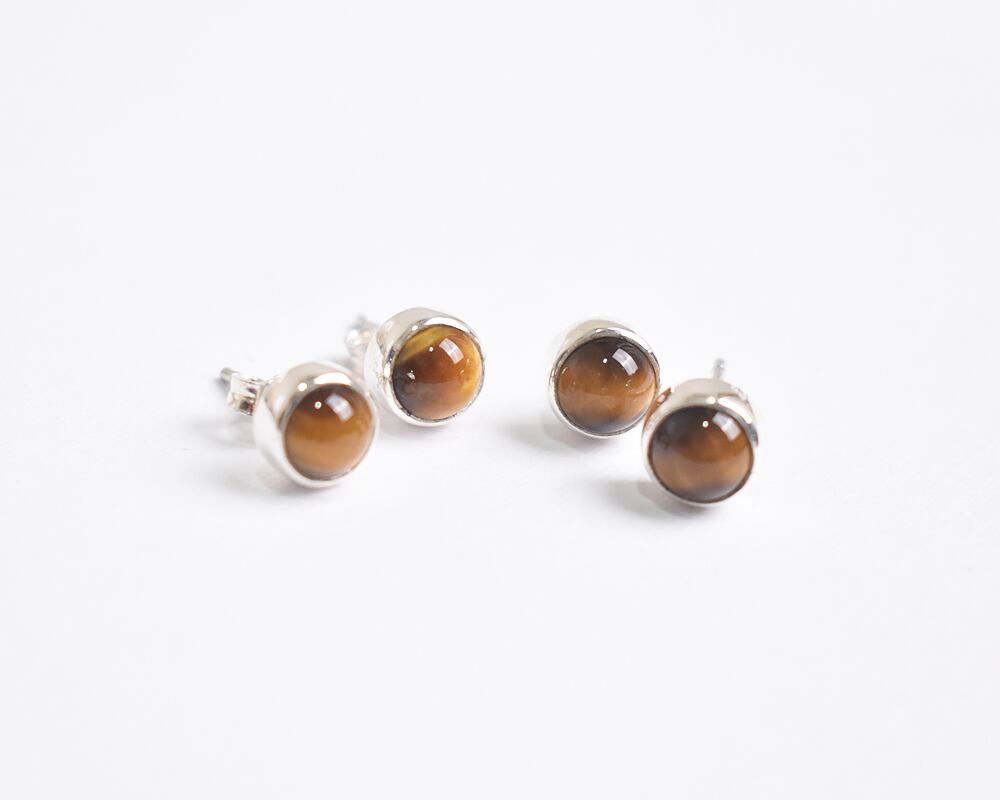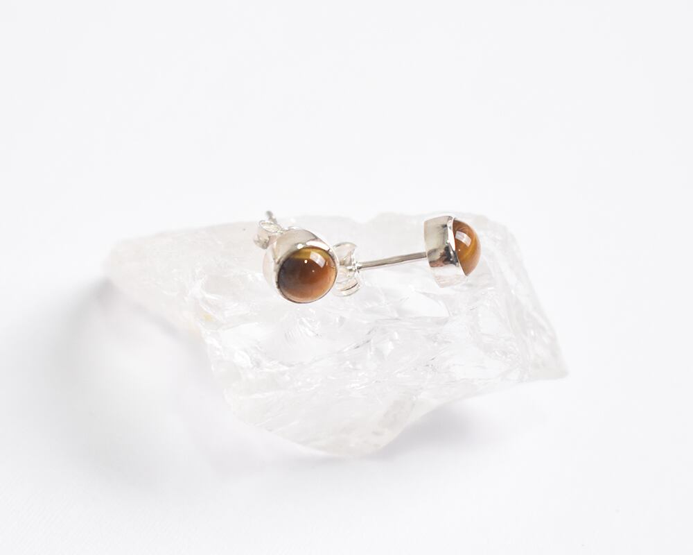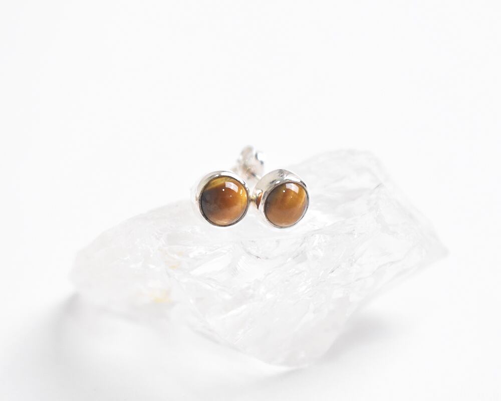 自然が織りなす神秘的な縞模様が美しいタイガーアイを一粒あしらったシンプルなシルバーピアスです。
