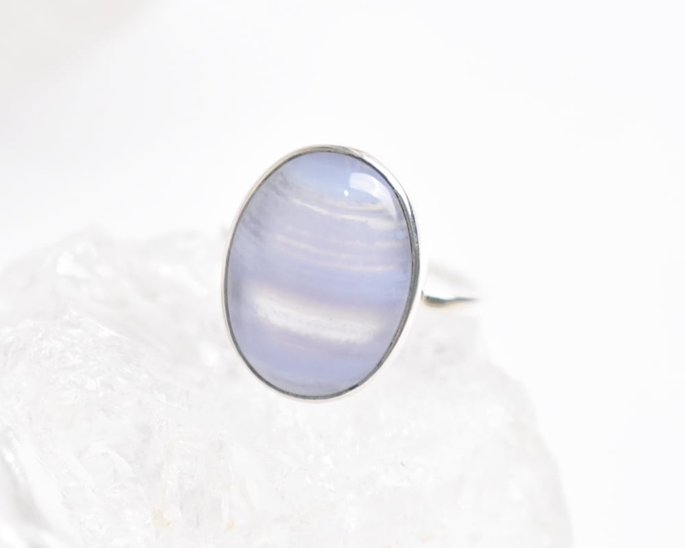 ブルーレースアゲートは、淡く繊細な水色と白いレース模様が美しい天然石です。